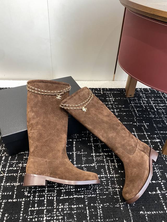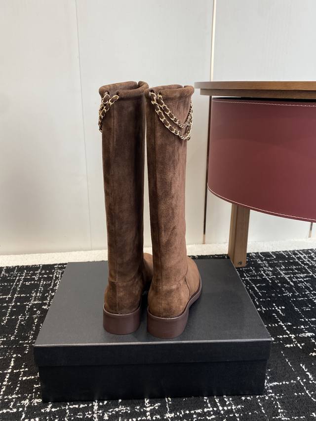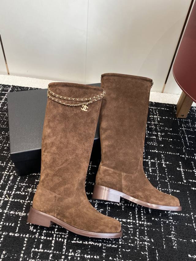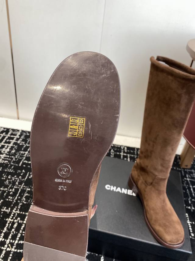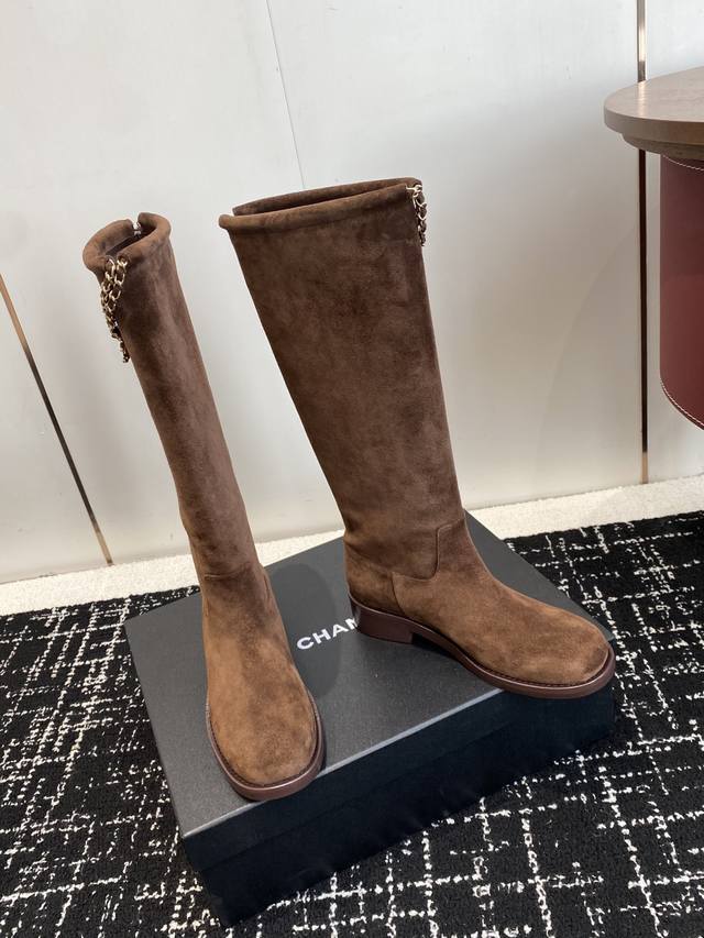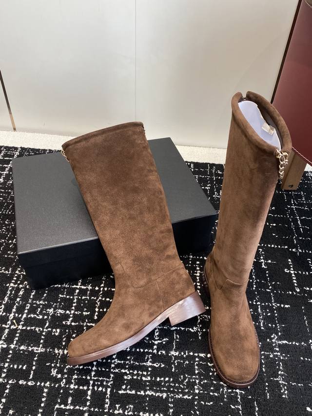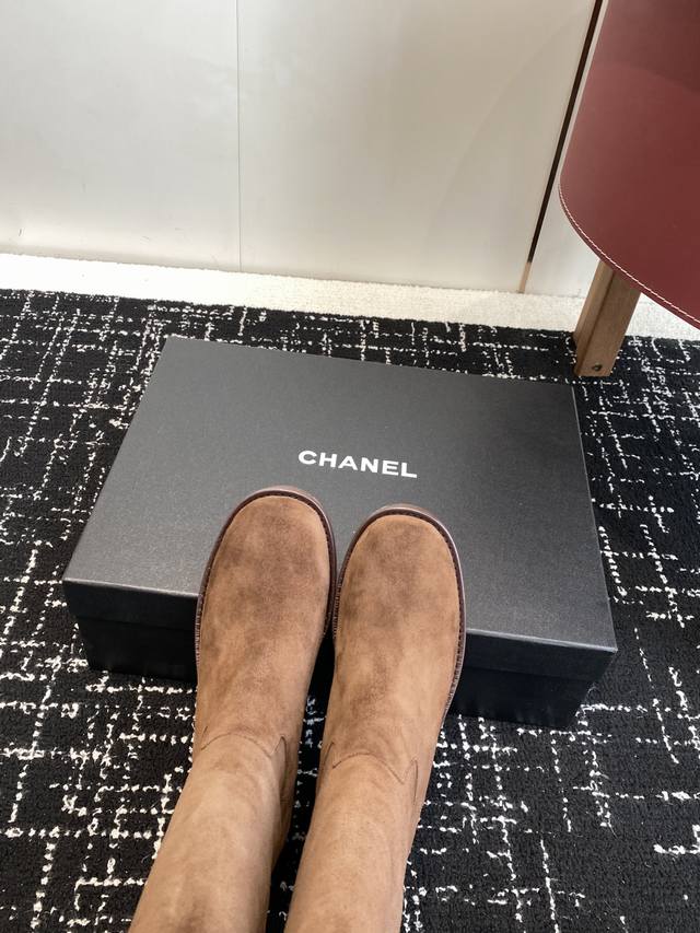 Chanel 香奈儿25秋冬小香麂皮拼色一脚蹬骑士短靴高靴!复古风马丁靴