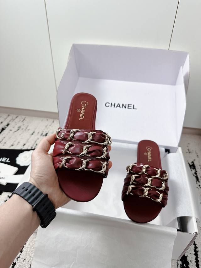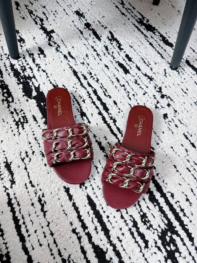 厂价 chane* 小香经典春夏 双C链条扣拖鞋 拖鞋的狂热爱好者又来了 可以承包你一整个夏天的时髦 经典菱格链条元素设计...