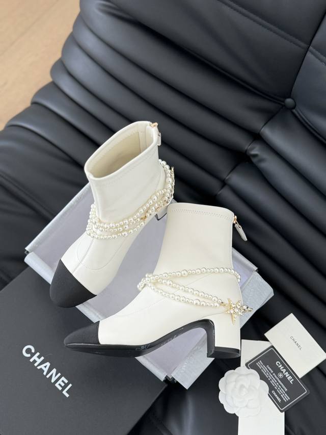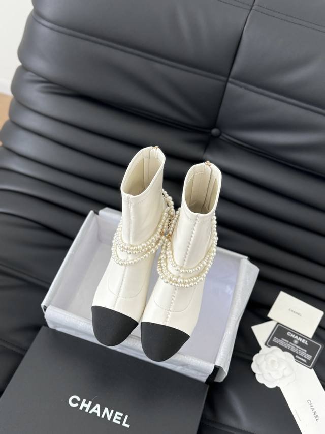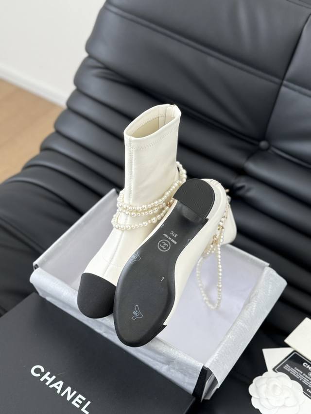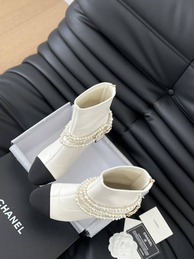 代购级 出厂价Pp: Chanel 24A高级手工坊珍珠系列短靴 一如既往的高版本 经典玛丽珍系列 鞋面羊皮 内里羊皮 真皮大底 跟高5.5Cm Size:35-39 其他码数定