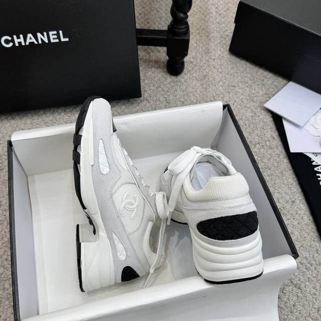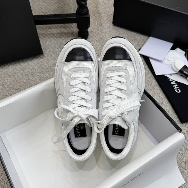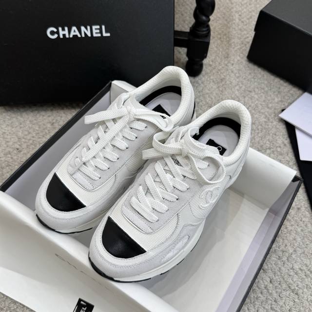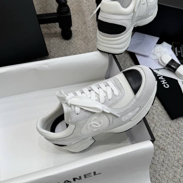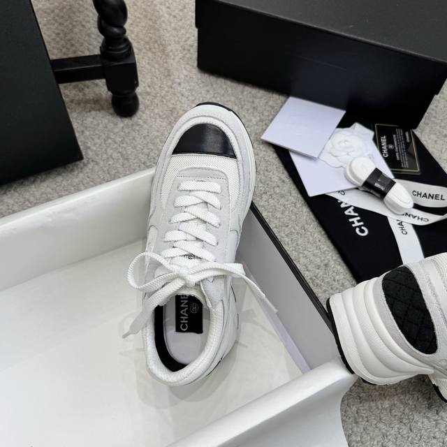 代购级 跟4Cm 5.5Cm DDD Chanel 25K高跟运动鞋,经典双C Logo超有辨识度厚底设计+隐形高跟,舒适又时髦,日常穿搭或轻运动都Ok!鞋面透气,春夏穿超合适,尺码覆盖广,适合各种脚型。搭配牛仔裤、连衣裙、西装外套都很出彩,休闲优雅兼具,是25K系列爆款,时尚圈都在夸! DDD 鞋面:网布+小牛皮+翻毛皮 DDD 内里透气科技网布 DDD 原版开模橡胶底 DDD 跟高4Cm 5.5Cm DDD Size:35-40 34.41定做 DDD