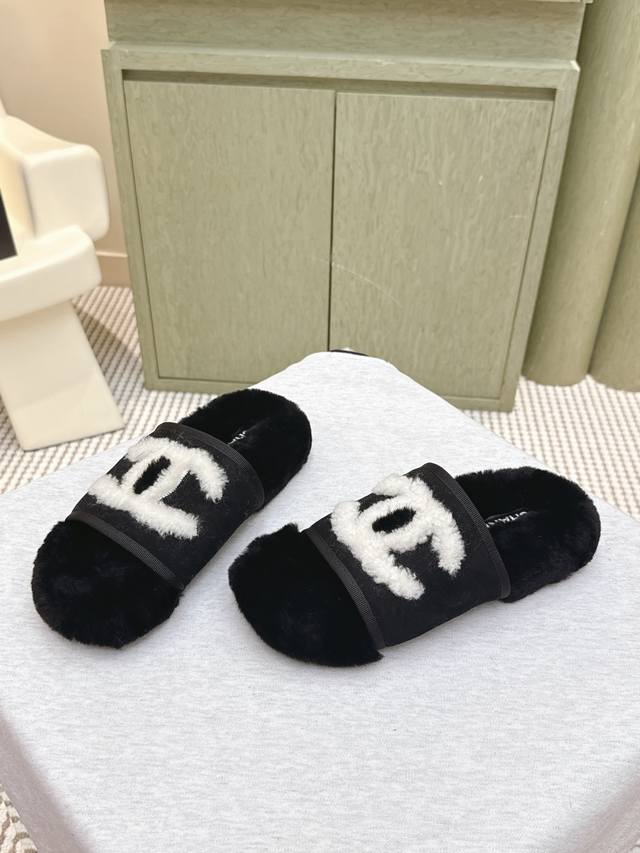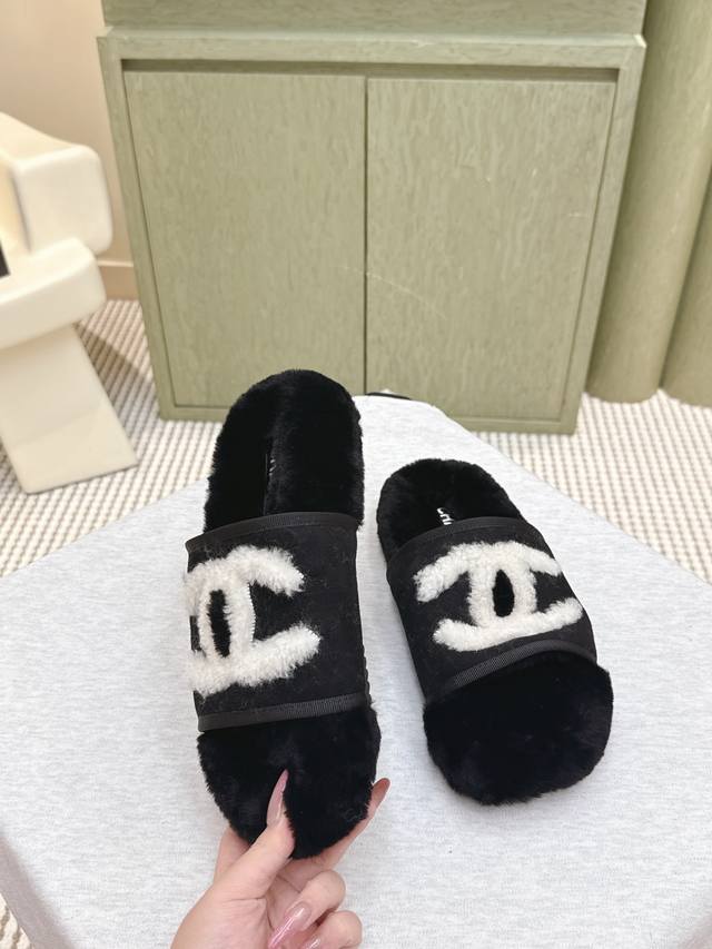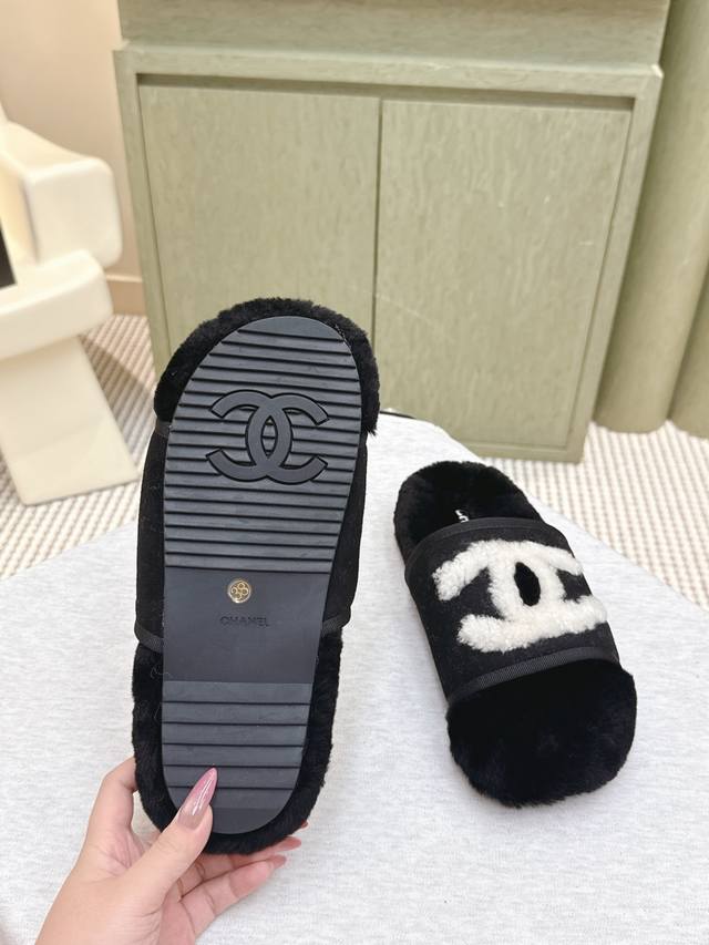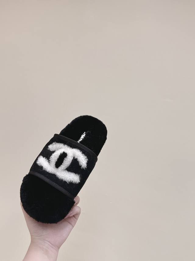 / 代购级 Chanel 经典四季双C毛毛拖鞋!这款毛拖真的是真太可爱了~ 柔软蓬松的毛毛,舒服暖脚 秋冬搭配袜子休闲又慵懒 上脚真的好看又时髦 进口羊毛,手感细腻