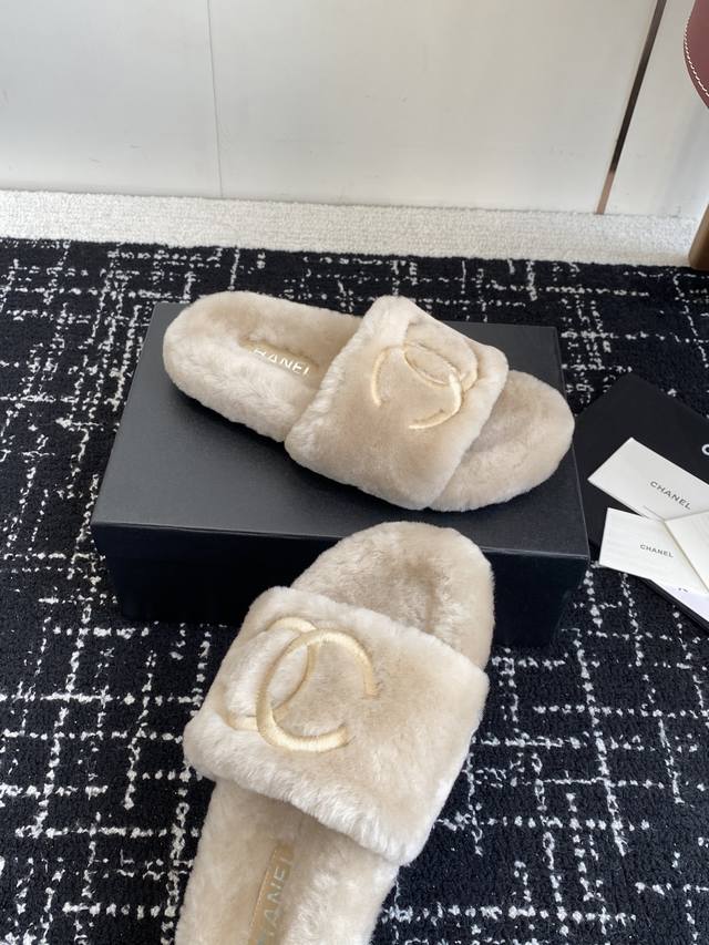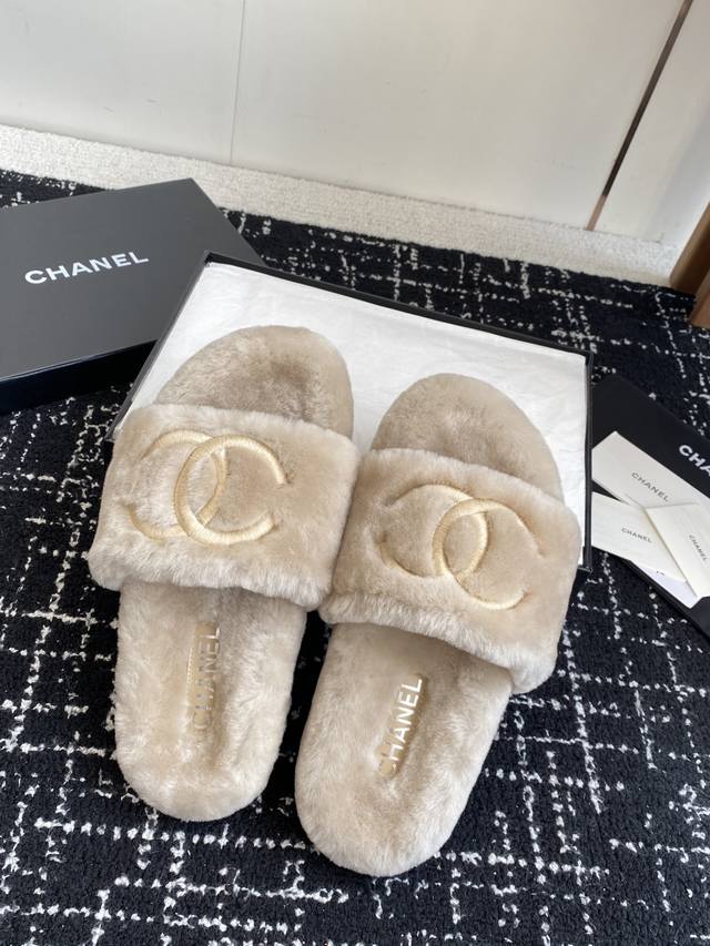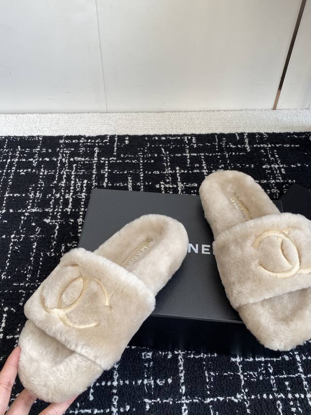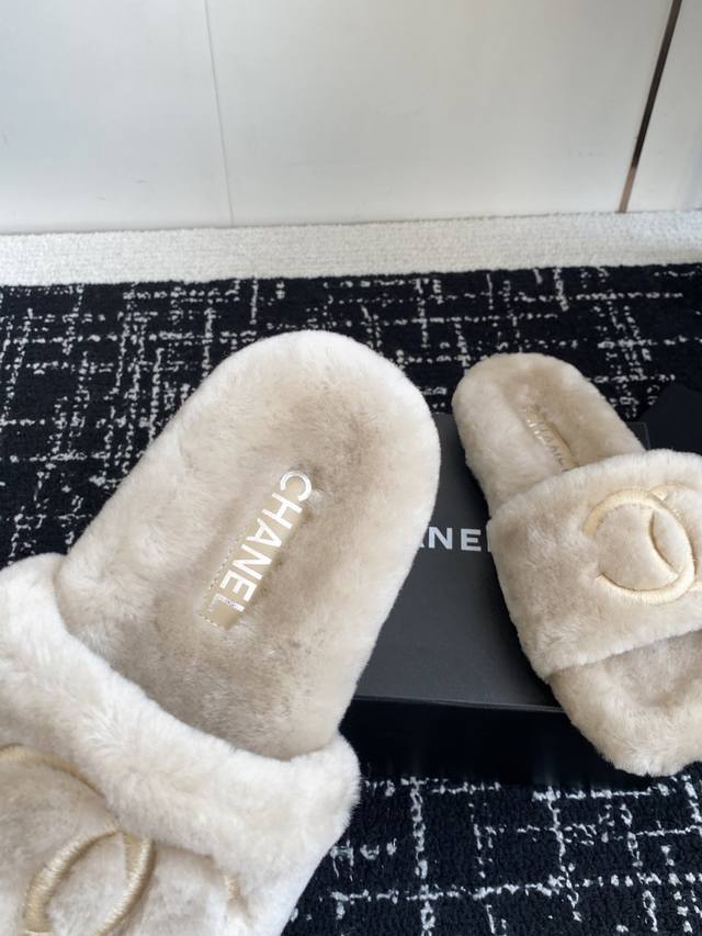 / 代购级 Chanel 经典四季双C毛毛拖鞋!这款毛拖真的是真太可爱了~ 柔软蓬松的毛毛,舒服暖脚 秋冬搭配袜子休闲又慵懒 上脚真的好看又时髦 进口羊毛,手感细腻