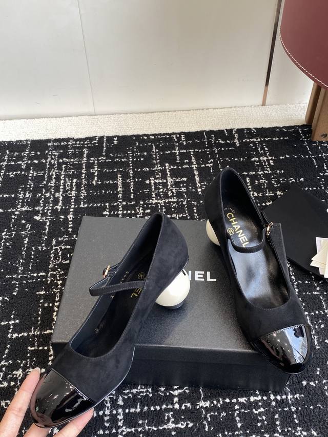 代购级 Chanel 25Ss 春夏系列 大珍珠跟 玛丽珍 单鞋 非常火的大双C设计手工车线非常耗时耗力 独特大底双拼做法 玫红色底贴让你不经意露出亮点大底车线永不脱底牢固永久复古就是经典浓郁C味永久流传 面料:进口羊皮 进口漆皮 内里:小山羊皮 大底:意大利真皮大底 跟高:5.5Cm Size:#35-41 40 41订做不退换