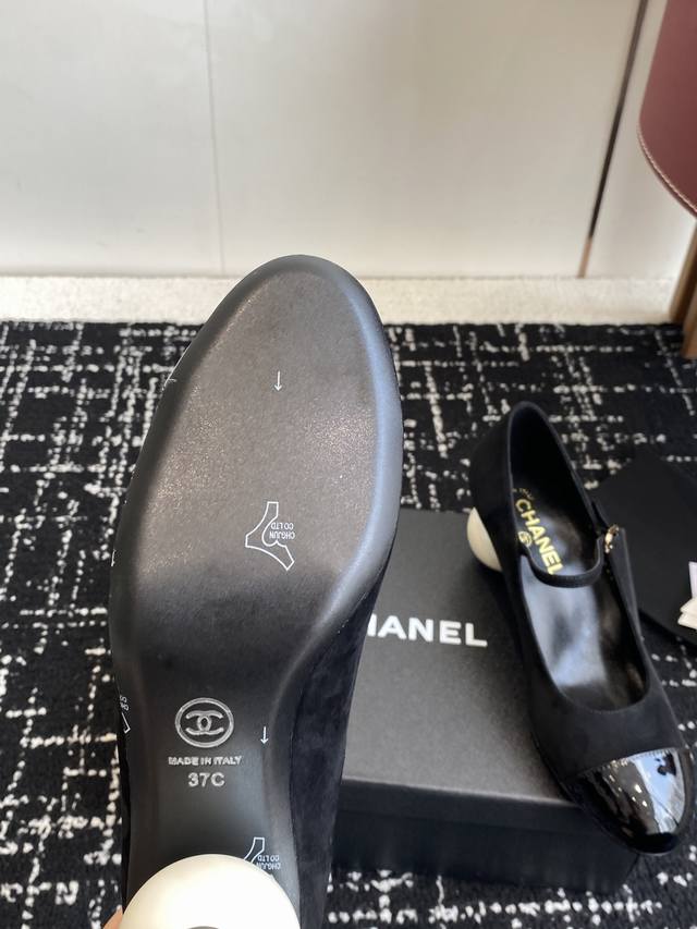 / 代购级 Chanel 25Ss 春夏系列 大珍珠跟 玛丽珍 单鞋 非常火的大双C设计手工车线非常耗时耗力 独特大底双拼做法 玫红色底贴让你不经意露出亮点大底车线