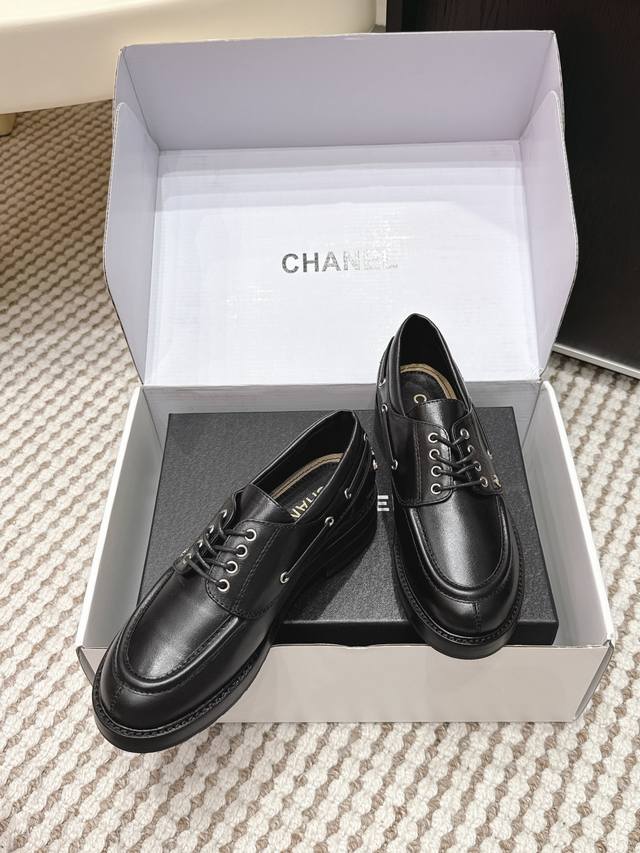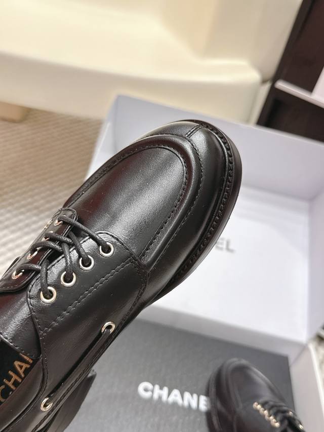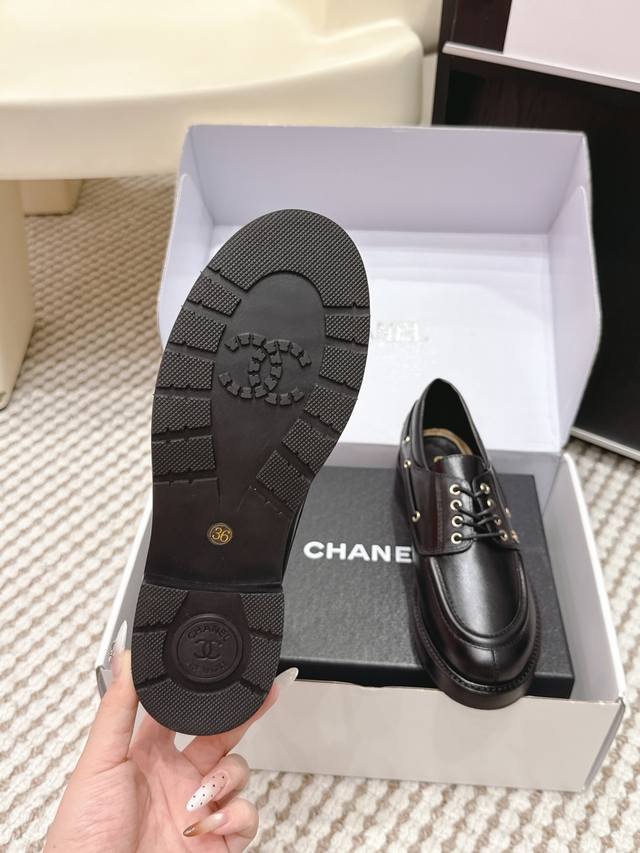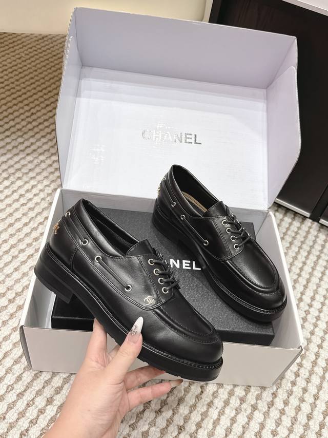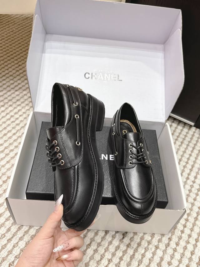 代购级 Ddd Chanel 26S 春夏新款 复古风绑带乐福鞋 DDD 走“复古学院+轻奢酷感”路线,保留乐福鞋的经典版型,既有学院风的减龄感,又带奢侈品的精致酷感。鞋面用光面小牛皮 漆皮,质感高级且易打理;鞋底是厚底松糕设计,边缘还有撞色缝线,细节感拉满。 DDD 圆头+低帮设计,包裹性好且不压脚,厚底缓冲性强,日常通勤、逛街都能穿;配色都是百搭款,适配西装、牛仔裤、百褶裙等多种风格。属于“轻熟学院风”,兼顾了少女感和轻熟气质。 DDD 鞋面:牛皮 Ddd 内里:羊皮 Ddd 大底:Tpu组合大底 D