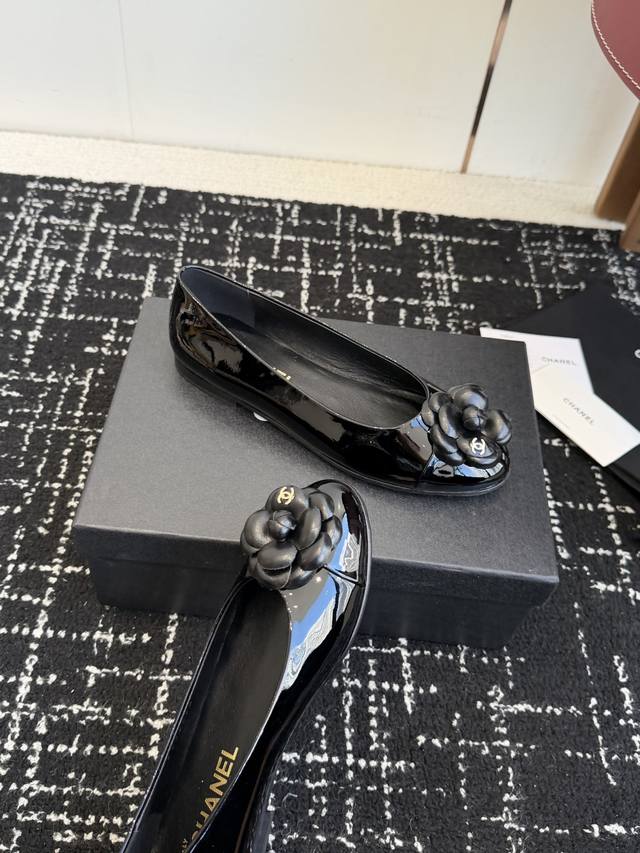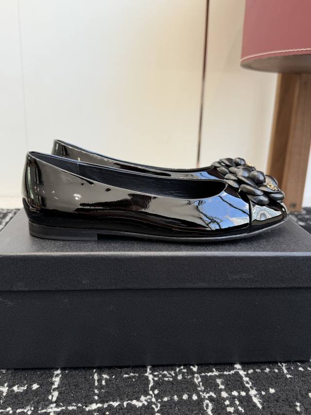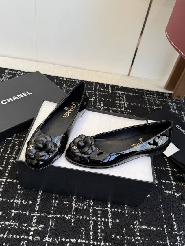 / 代购级 Chanel25款香奈儿经典山茶花平底鞋再现!经典小羊皮,触感温柔得不像话。鞋面那朵立体山茶花,是 Chanel永不褪色的优雅密码 极致深邃的黑,是永不