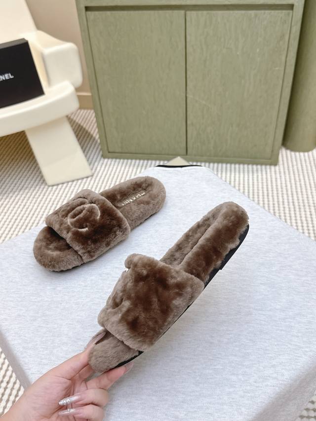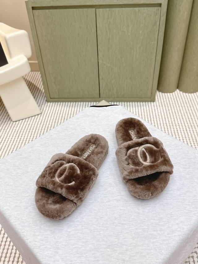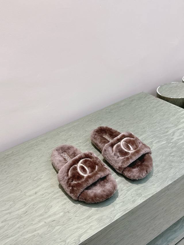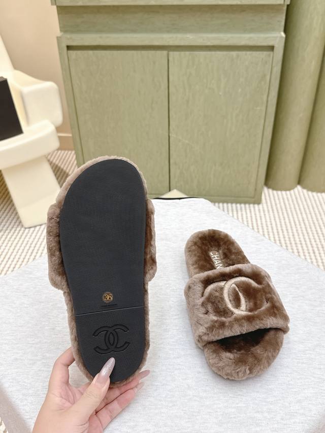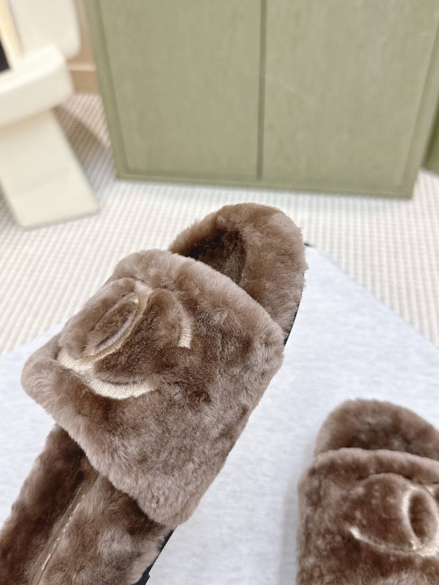 代购级 |D1176Chanel 经典四季双C毛毛拖鞋!这款毛拖真的是真太可爱了~ 柔软蓬松的毛毛,舒服暖脚 秋冬搭配袜子休闲又慵懒 上脚真的好看又时髦 进口羊