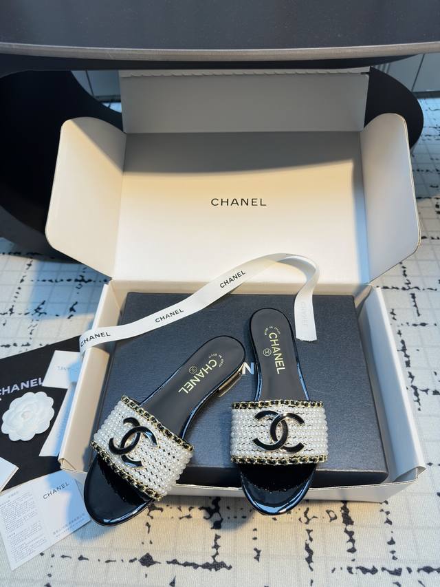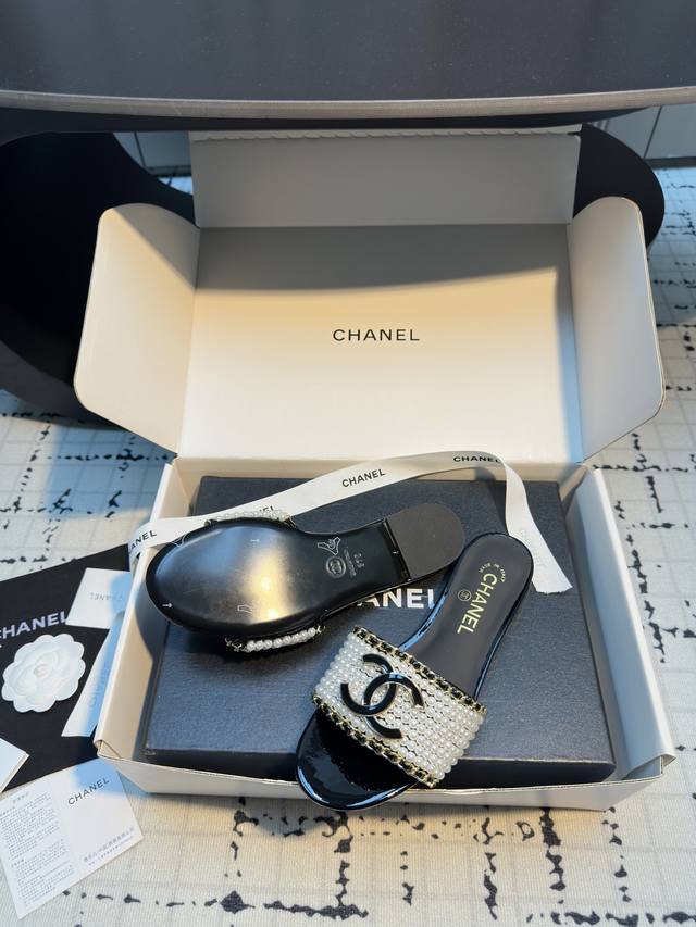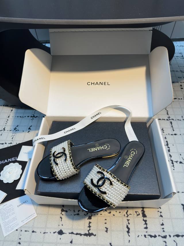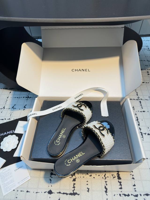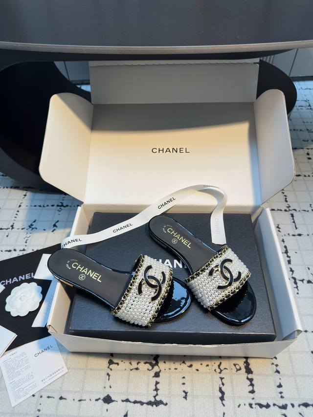 / 代购级Chane* 小香 25Ss 春夏新品度假 珍珠懒人拖鞋小香的一款全新设计 鞋面纯手工珍珠编织搭配双C五金装饰 简约百搭上脚超级美的 怎么看都超美鞋面:采