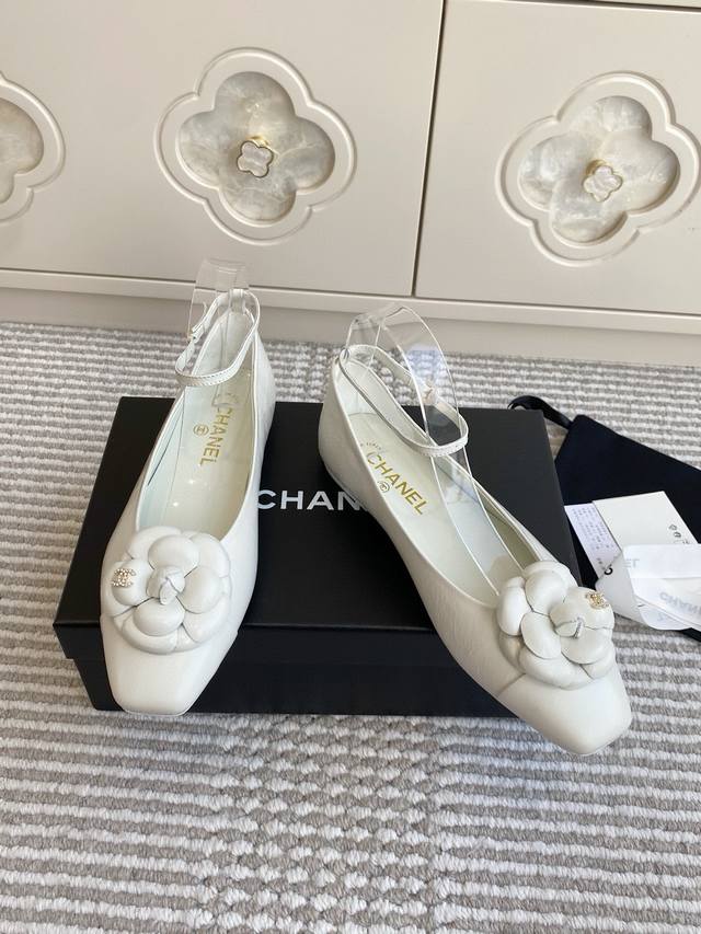 代购级Chane* 香奈儿 25Ss 新款 单鞋玛丽珍鞋方头山茶花 平底鞋