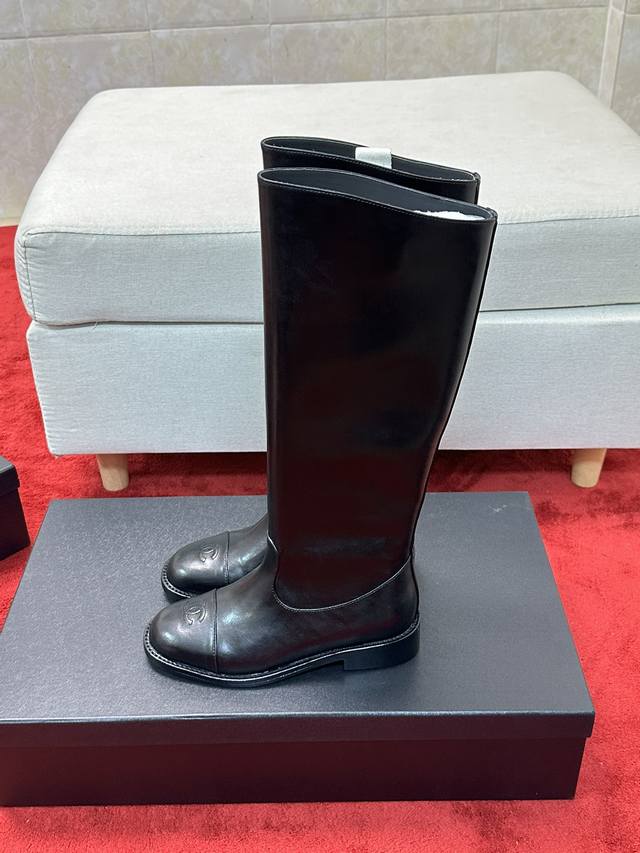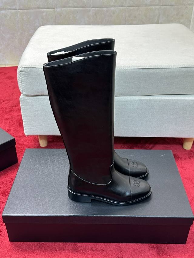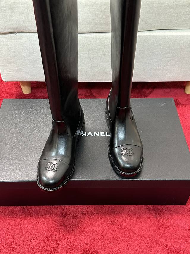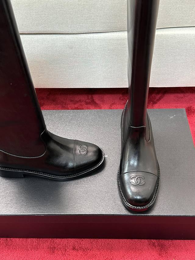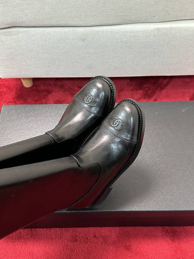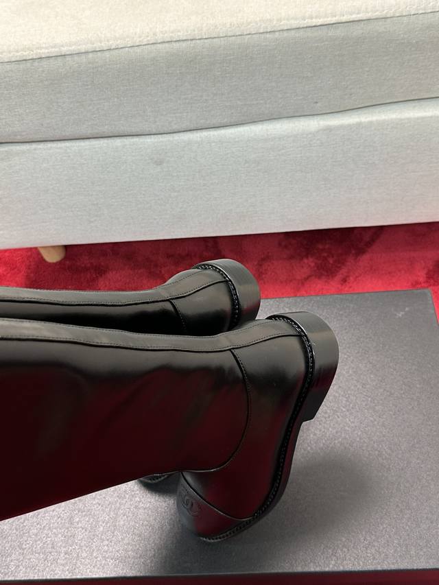 价 Chane*|小香经典 双C粗跟骑士靴长靴 率性又极简的长筒靴 鞋型挺括有型 线条感很足 很符合香家所追求的美感 自然光下小牛皮质感肉眼可见 上脚名媛气质