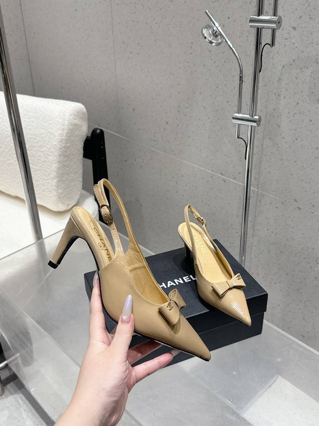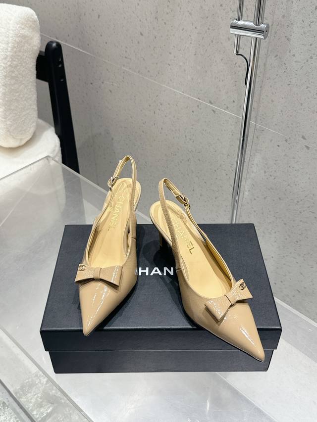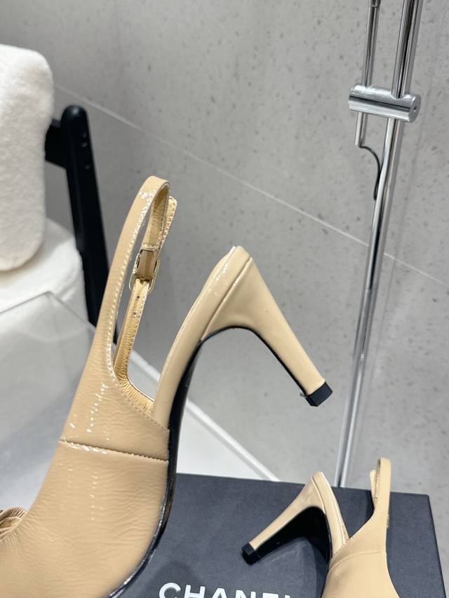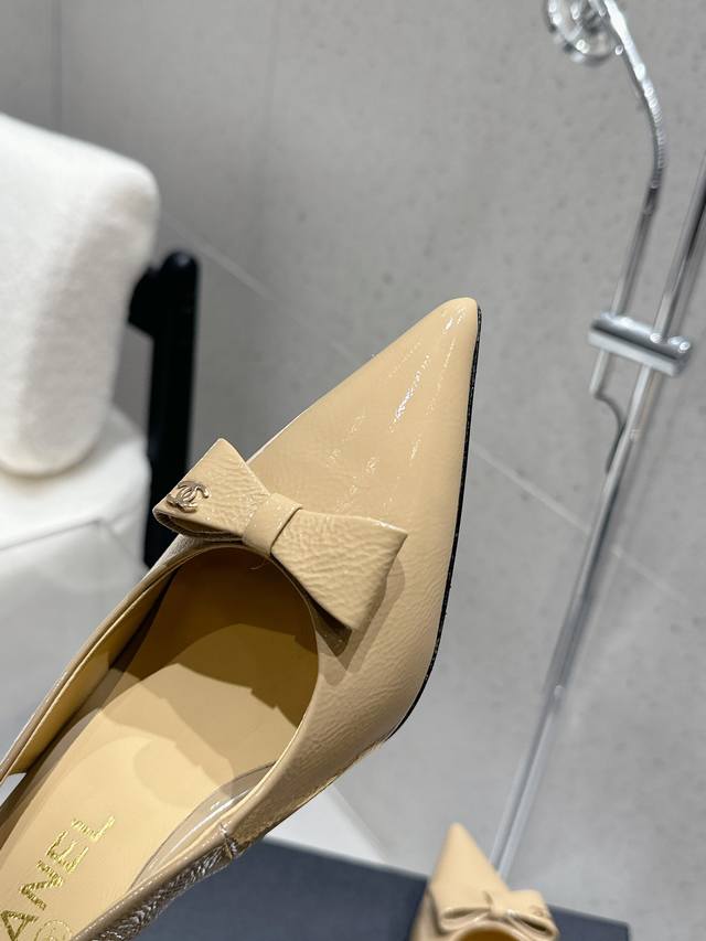 凉鞋 单鞋 -原版开发 高版本 -Chanel 香奈儿小香C家 2025 蝴蝶结尖头高跟凉鞋单鞋 鞋面:皱纹牛漆皮 内里:透气羊皮 鞋底:进口真皮大底 码数:3