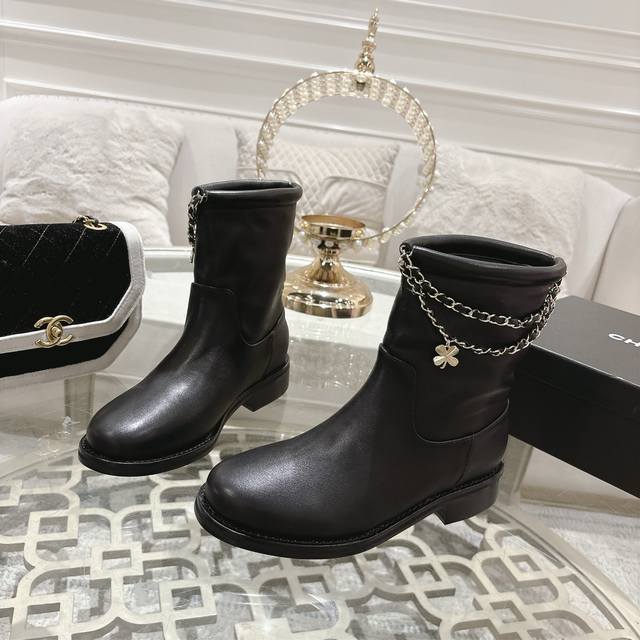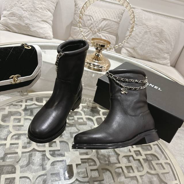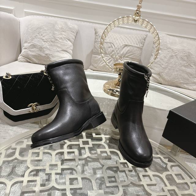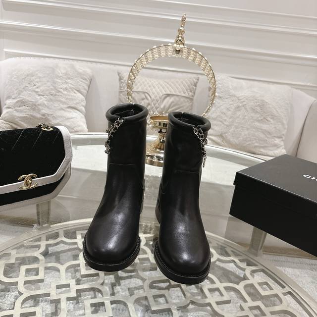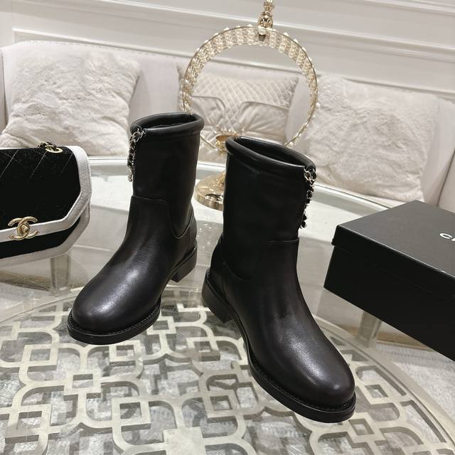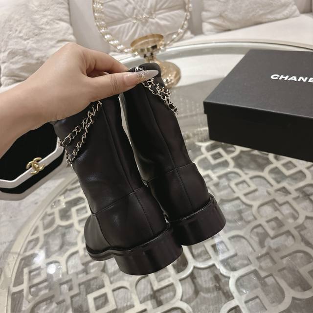 出厂价P 皮里Chanel 小香25Ss秋冬走秀款链条短靴 标志性的大链条设计,把经典玩出花!粗旷却不失精致的金属链条环绕靴筒,在硬朗与柔美间达到精妙平衡,碰撞出极具冲击力的时尚火花。行走时 链条随着步伐轻轻晃动,发出悦耳声响 举手投足间尽显潇洒不羁 。中跟的巧妙设计 既保证了穿着的舒适度,无论是搭配简约的阔腿裤。营造随性大气的职场风格 还是与短裙短裤相配 展露青春活力的俏皮感 亦或是配上修身牛仔裤 演绎休闲时尚的都市风情, 每一步都踩在审美点上 是衣橱里能穿十年的“硬货” 鞋面:进口牛皮 牛猄 内里:进