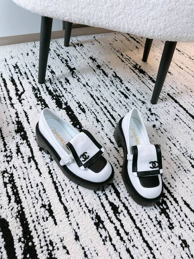 出厂价p 5B 香奈儿复古乐福鞋 DDD 小香家香奶奶长在我审美上的一款大头乐福鞋 黑白配色超Vintage满满的松弛感 胖墩墩地好可爱 原版一比一复刻 DDD 面料:头层牛皮 DDD 跟高:6 DDD 内里:羊皮 DDD :-0 定制不退换 DDD 鞋底:原版真皮大底1:1开模 非市面便宜的橡皮底 DDD 颜色:黑色 白色 两色入 DDD 配置原版全套包装 DDD
