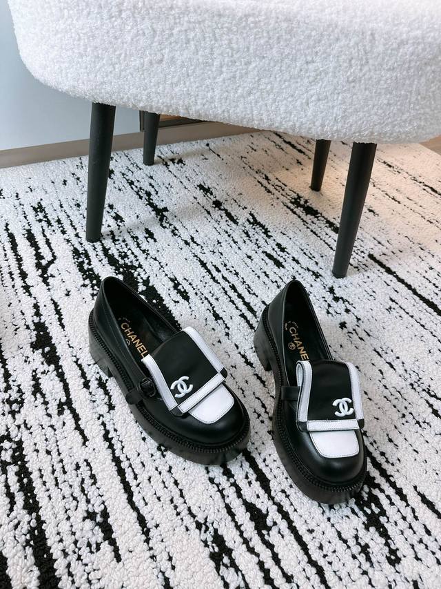 出厂价p 5B 香奈儿复古乐福鞋 长期供货 小香家香奶奶长在我审美上的一款大头乐福鞋 黑白配色超Vintage满满的松弛感 胖墩墩地好可爱 原版一比一复刻 面料