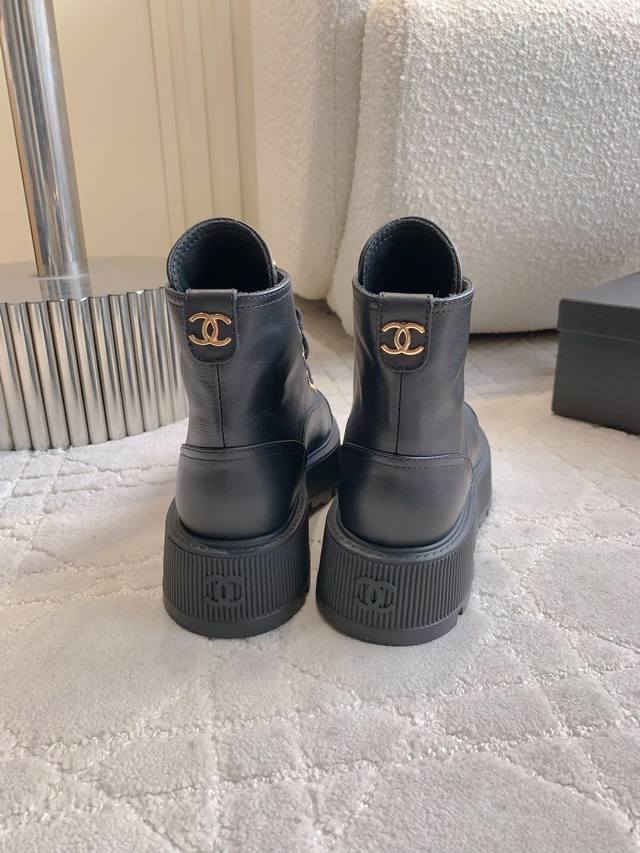 / 出厂价P Chane*新款厚底短靴 经典百搭系列 金属字母Logo点缀 鞋身很是耐看 鞋底增高拉长腿部线条 超级显腿细 上脚效果绝绝子 鞋面原版小牛皮 内里垫脚