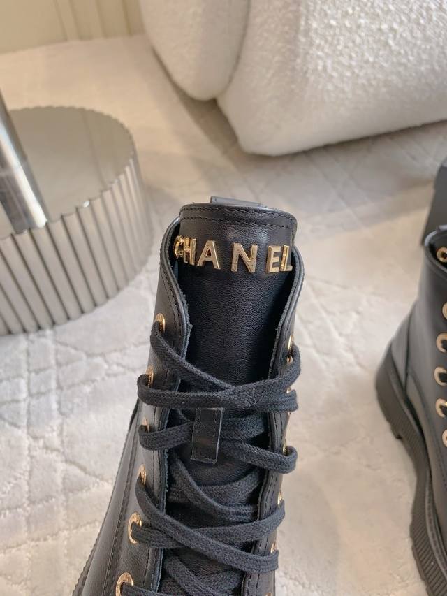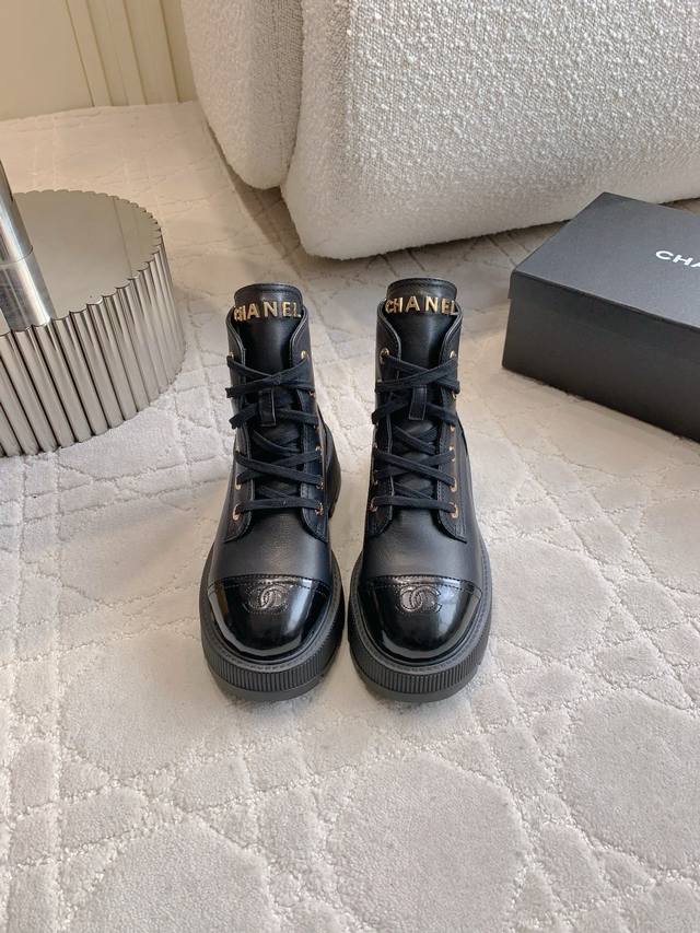 出厂价P Chane*新款厚底短靴 经典百搭系列 金属字母Logo点缀 鞋身很是耐看 鞋底增高拉长腿部线条 超级显腿细 上脚效果绝绝子...