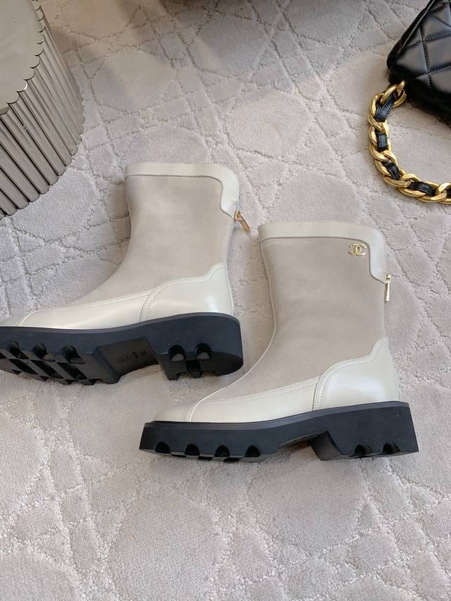 出厂价p DDD Chane*新款厚底短靴 经典简约百搭款 DDD 鞋面原版牛皮 内里垫脚羊皮 意大利真皮大底 尺码35-39 40 41定做 DDD