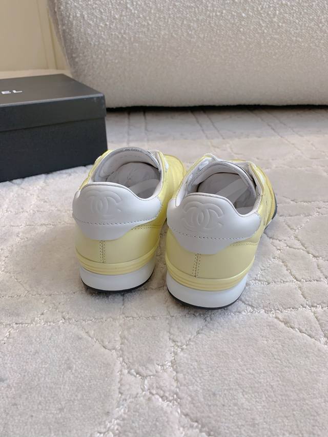 香奈儿新款情侣德训休闲鞋 微微尖的德训鞋头更显脚瘦,小牛皮面跟反绒材质的碰撞,时尚,非常上脚舒适!...