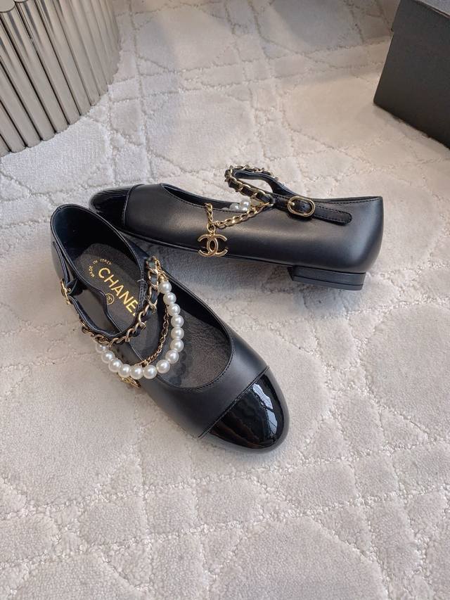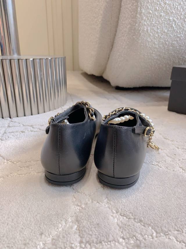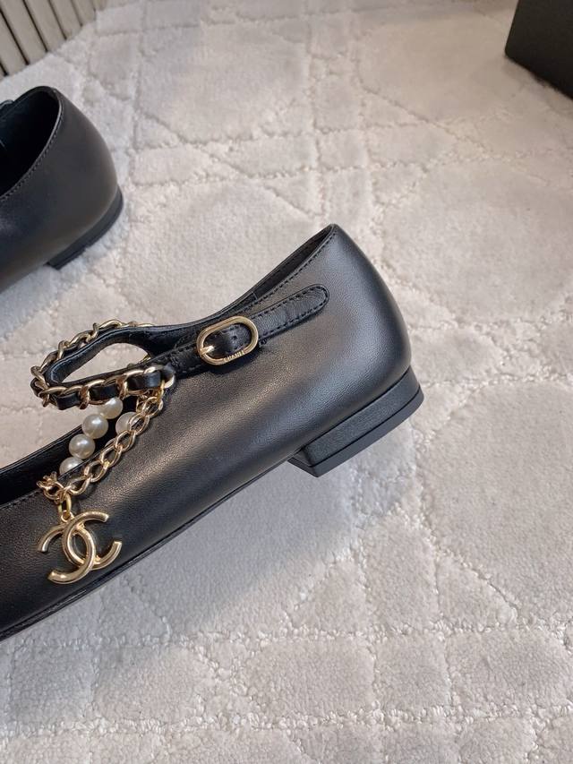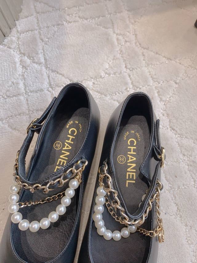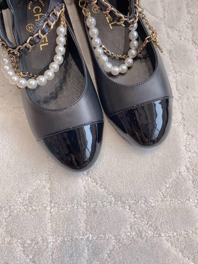 出厂价P Chane*新款珍珠链条玛丽珍 香家高级感这块总让人大写的服气 看起来简单的款式 但上脚就莫名很高级 绝对的少女感 舒适好穿 鞋面小羊皮 内里垫脚羊皮