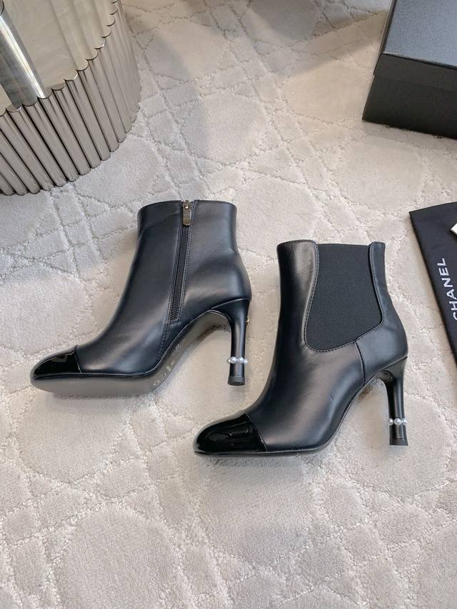 / 出厂价P Chane*新款高跟短靴 经典百搭系列 珍珠鞋跟点缀点缀 鞋身很是耐看 拉长腿部线条 超级显腿细 上脚效果绝绝子 鞋面原版小牛皮 内里垫脚羊皮 意大利