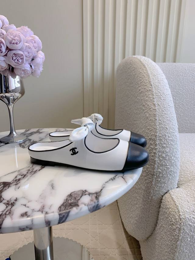 Chane*新款蝴蝶结平底半拖鞋 香家高级感这块总让人大写的服气 看起来简单的款式 但上脚就莫名很高级 绝对的少女感 舒适好穿