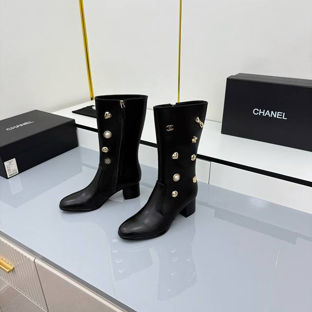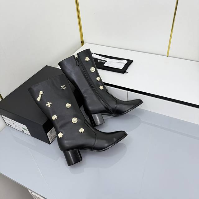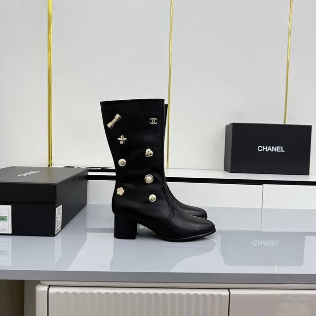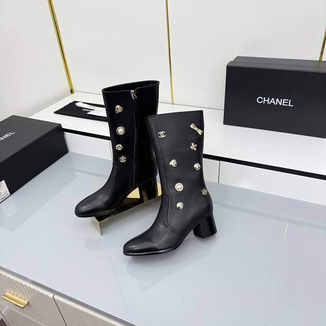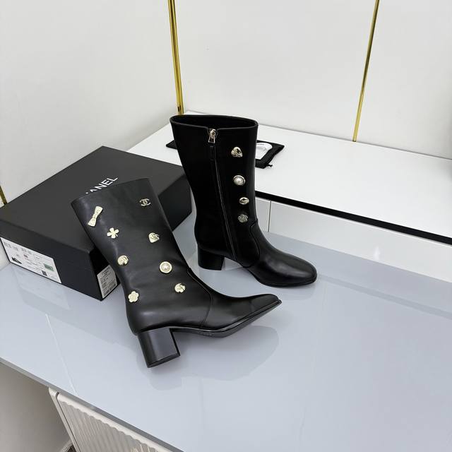 出厂价pp,橡胶底 皮底 DDD 25Ss香奈尔秋冬粗跟中筒靴,面料:皮面绒面两种选择。跟高6Cm;码数34-42 34 4142定做不退换 ; DDD
