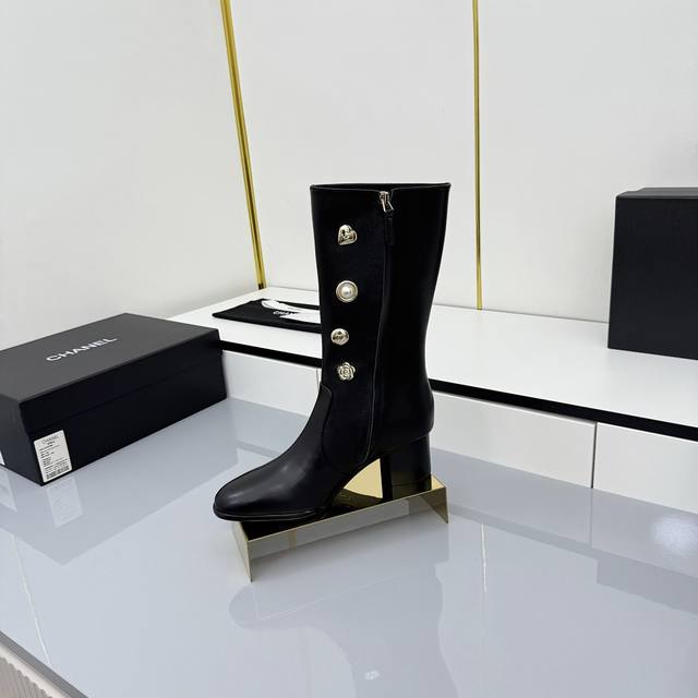 出厂价pp,橡胶底 皮底 25Ss香奈尔秋冬粗跟中筒靴,面料:皮面绒面两种选择。跟高6Cm;码数34-42 34 4142定做不退换 ;