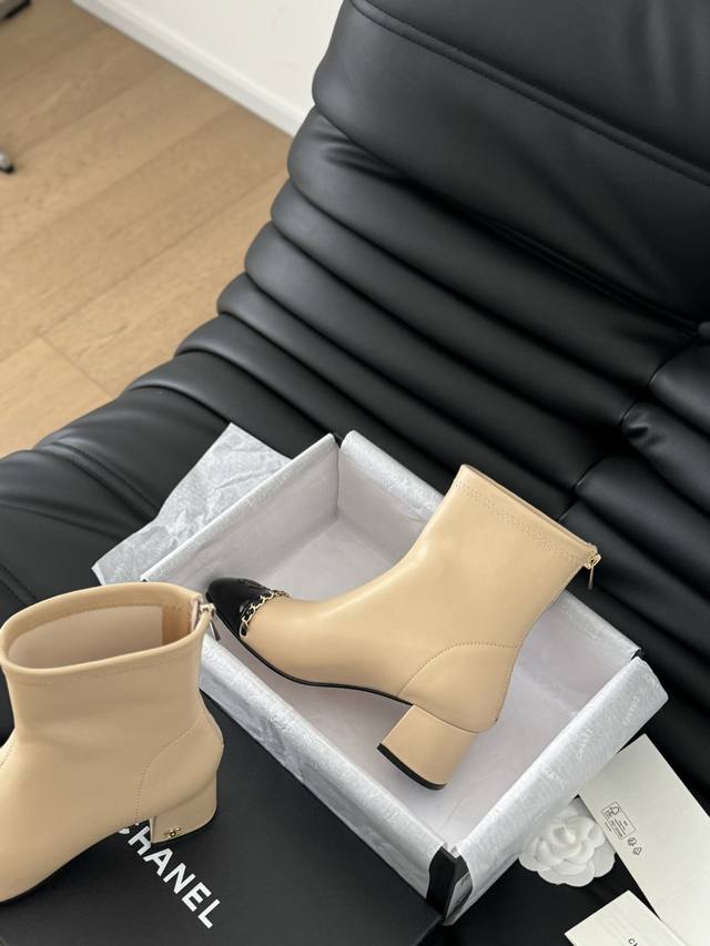 出厂价Pp: 代购级 Chanel 经典新款弹力靴系列! 皮料质感超好,上脚秀气~ 鞋面小牛皮,内里羊皮,原版大底! Size:35-39 其它码数定