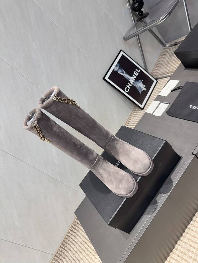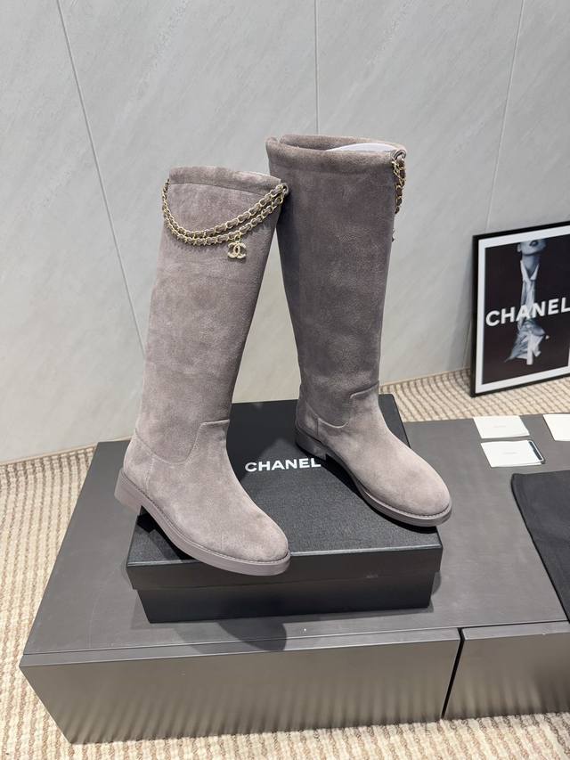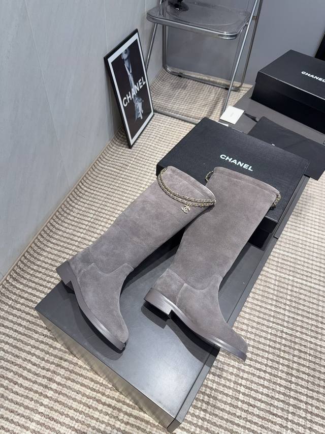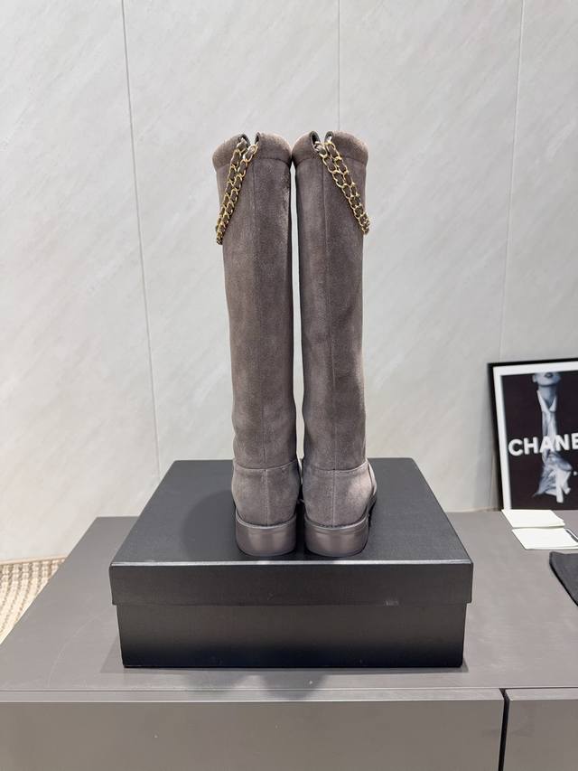 出厂:橡胶底 真皮底 DDD 独家顶级版本 DDD Chane*小香25Vs秋季专柜最新靴子系列 DDD 圆头链条一脚蹬高靴 DDD 香奈儿女士钟爱简约又难以抗拒系 搭配展现与众不同的穿搭风格、自由混搭闪耀到位跟紧香奶奶时尚步伐!!! DDD 顶级工艺质感完美呈现,无论任何细节均可对比专柜,最好级别的顶级货,随意进出专柜!! DDD 面料:原版定制牛皮 DDD 内里:原版定制羊皮 DDD 垫脚:原版定制羊皮 DDD 大底:原版组合底 橡胶底-真皮底2种可选 DDD 跟高:3.5Cm DDD 码数:35-3