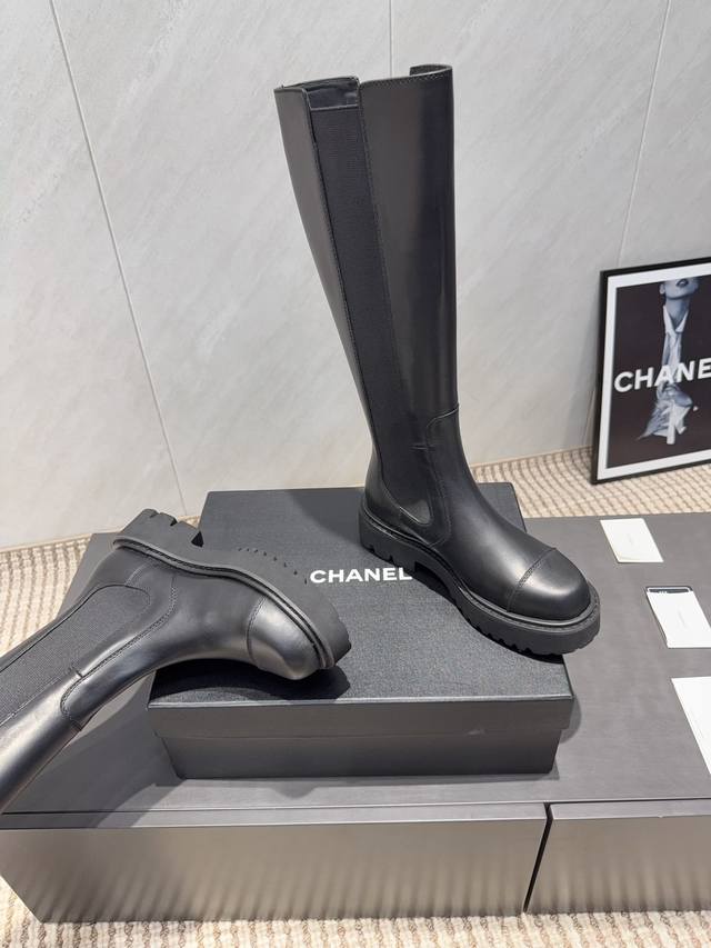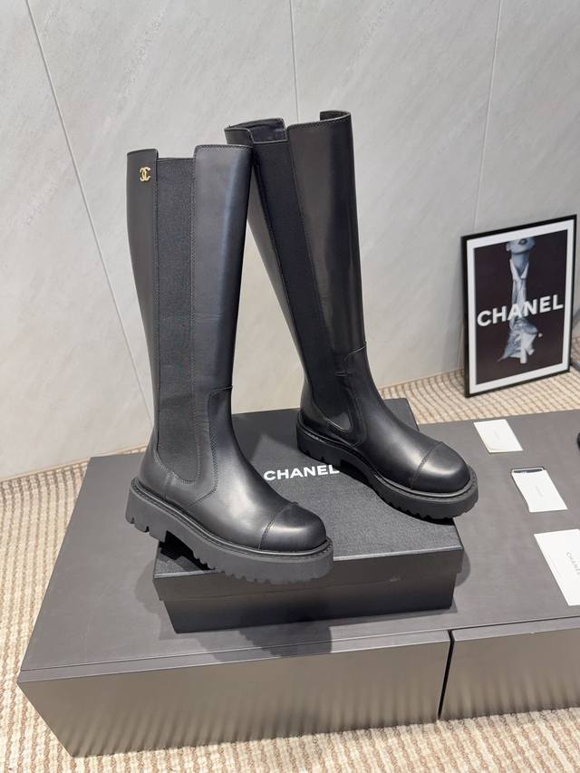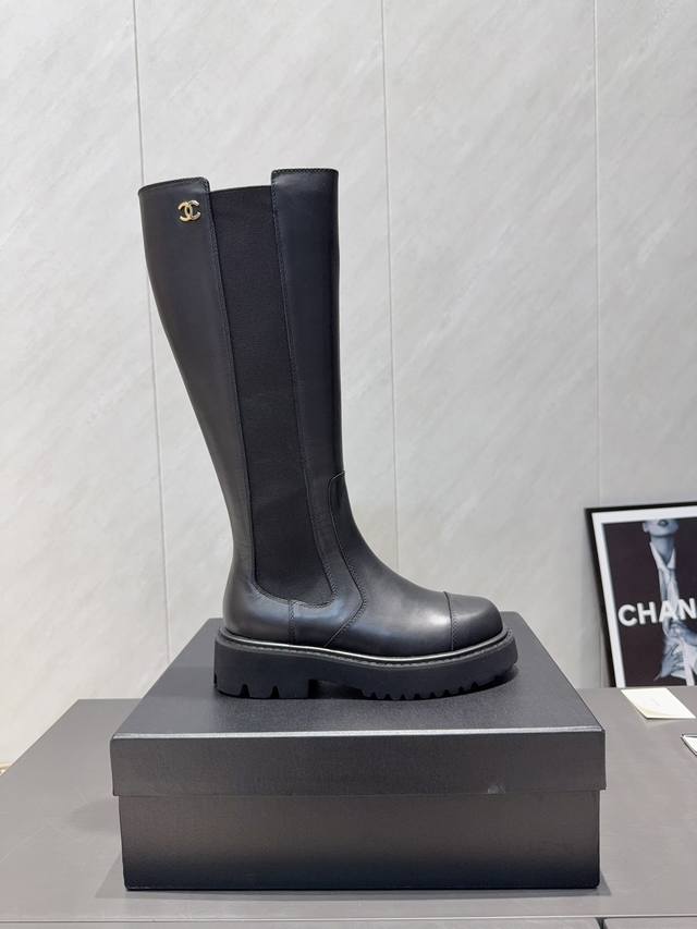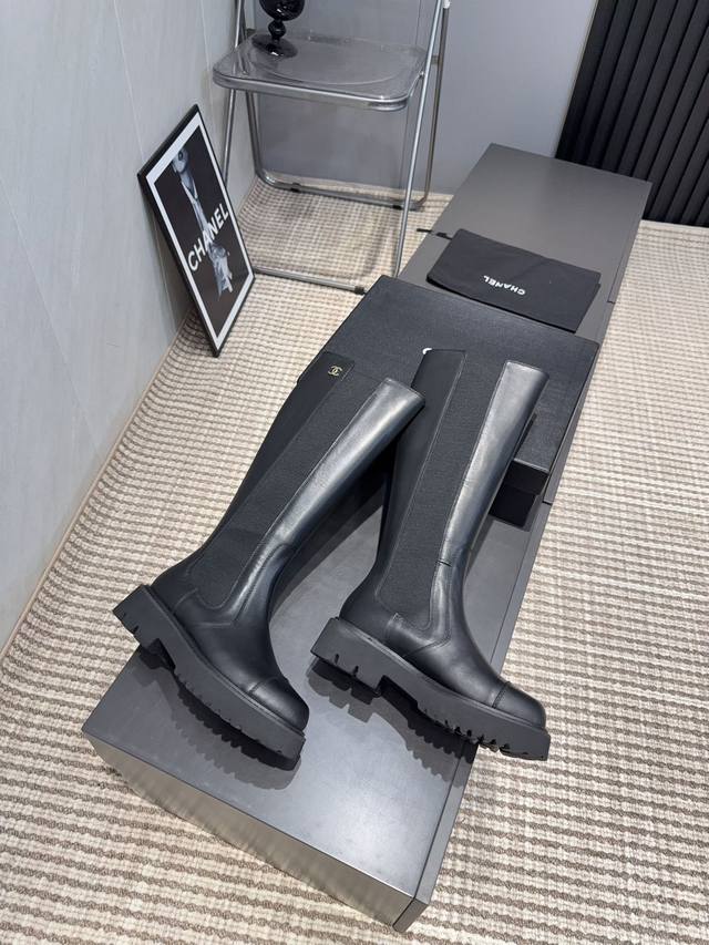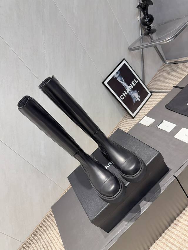 出厂:高靴 独家顶级版本 Chane*小香25Vs秋季专柜最新靴子系列 圆头松紧厚底高靴 香奈儿女士钟爱简约又难以抗拒系 搭配展现与众不同的穿搭风格、自由混搭闪