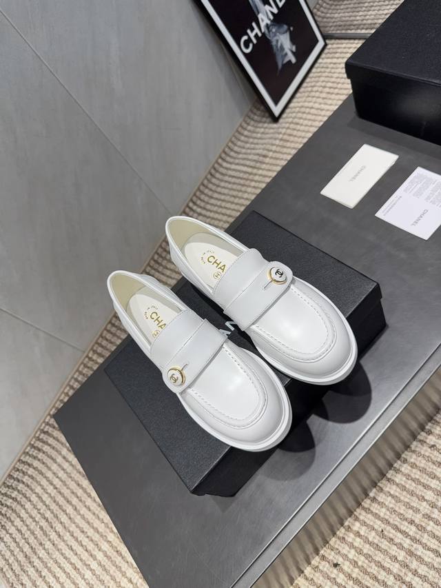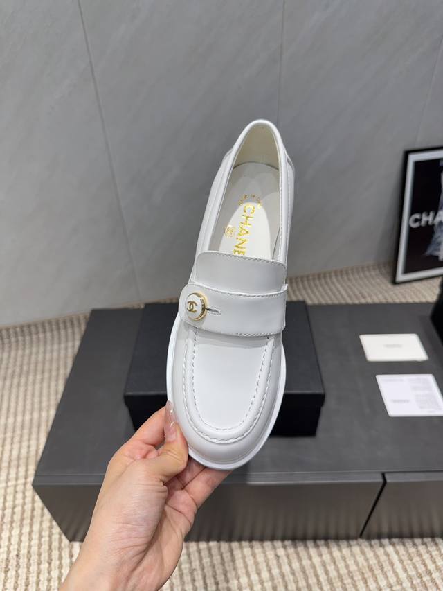 出厂: 独家顶级版本 Chane*小香25Vs秋季专柜最新乐福系列 圆头横带孔乐福鞋 香奈儿女士钟爱简约又难以抗拒系 搭配展现与众不同的穿搭风格、自由混搭闪耀到位跟紧香奶奶时尚步伐!!! 顶级工艺质感完美呈现,无论任何细节均可对比专柜,最好级别的顶级货,随意进出专柜!! 面料:原版定制牛皮 内里:原版定制羊皮 垫脚:原版定制羊皮 大底:原版定制真皮组合底 跟高:5Cm 码数:35-39 40.41定制不退换 包装:原版全套包装 颜色:官网同步更新