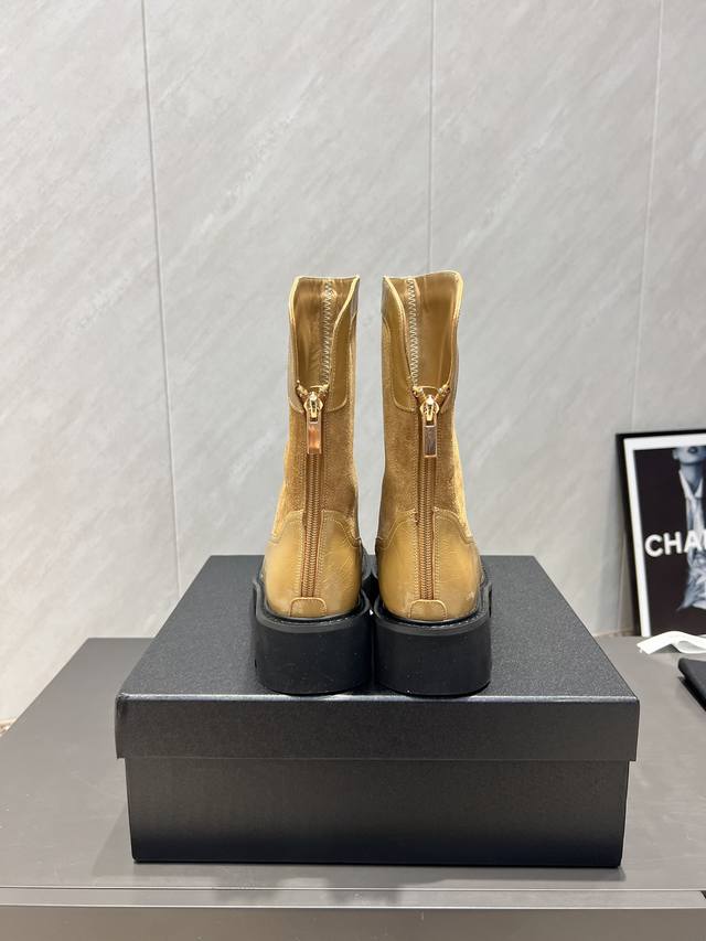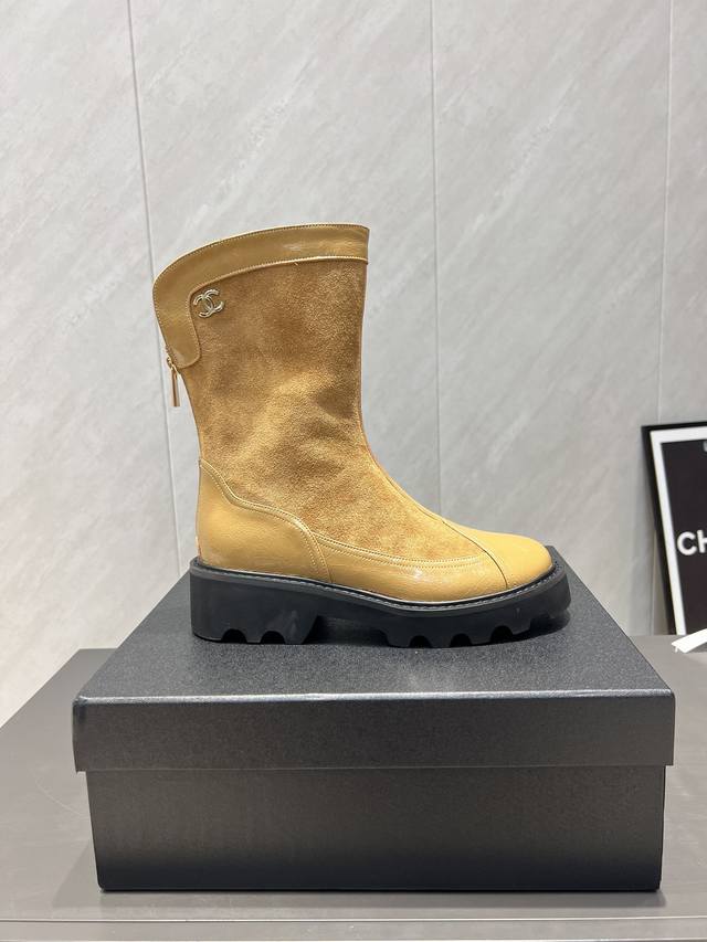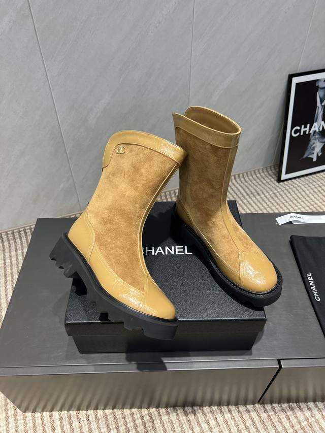 出厂: 独家顶级版本 DDD Chane*小香25Vs秋季专柜最新靴子系列 DDD 圆头厚底短靴 DDD 香奈儿女士钟爱简约又难以抗拒系 搭配展现与众不同的穿搭风格、自由混搭闪耀到位跟紧香奶奶时尚步伐!!! DDD 顶级工艺质感完美呈现,无论任何细节均可对比专柜,最好级别的顶级货,随意进出专柜!! DDD 面料:原版定制牛油皮牛猄拼色工艺 DDD 内里:原版定制羊皮 DDD 垫脚:原版定制羊皮 DDD 大底:原版开模发泡组合底 DDD 跟高:4Cm DDD 码数:35-39 40.41定制不退换 DDD