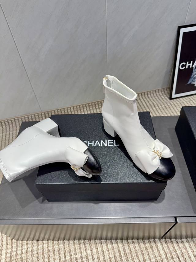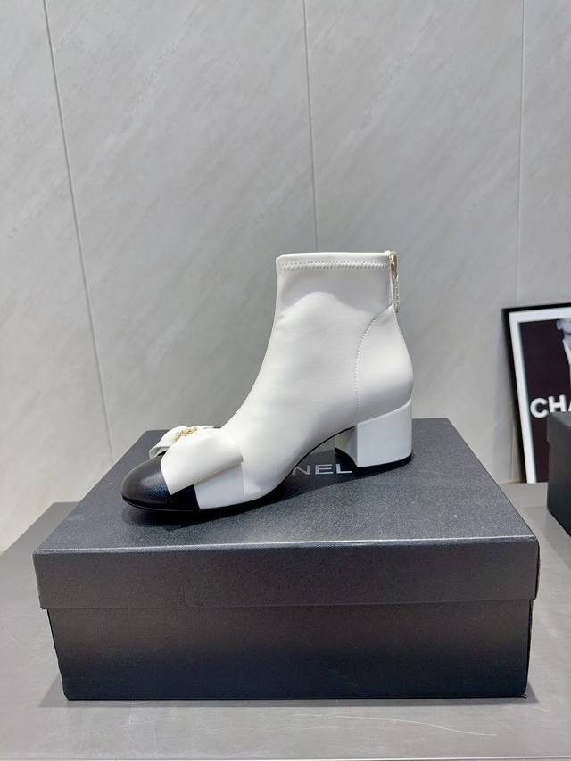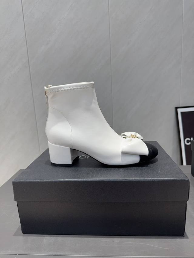 出厂: 独家顶级版本 DDD Chane*小香25Vs秋季专柜最新靴子系列 DDD 蝴蝶结弹力短靴 DDD 香奈儿女士钟爱简约又难以抗拒系 搭配展现与众不同的穿搭风格、自由混搭闪耀到位跟紧香奶奶时尚步伐!!! DDD 顶级工艺质感完美呈现,无论任何细节均可对比专柜,最好级别的顶级货,随意进出专柜!! DDD 面料:原版定制牛皮蝴蝶结工艺 DDD 内里:原版定制羊皮 DDD 垫脚:原版定制羊皮 DDD 大底:原版定制真皮底 DDD 跟高:5Cm DDD 码数:35-39 40.41定制不退换 DDD 包装: