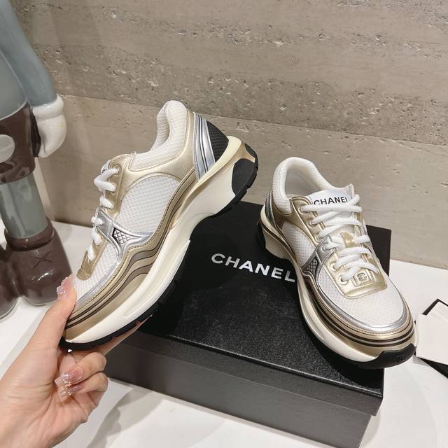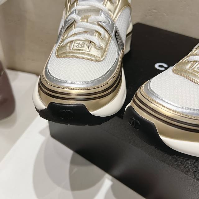 Chanel香奈儿24C 早春度假系列 小香 金属 休闲 运动鞋 金 银角大王