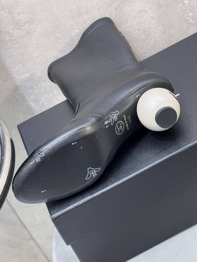 / 出厂 Chanel 小香秋冬新款大珍珠弹力靴中筒靴女 精彩亮点 巨型珍珠 定制羊皮 羊猄+漆皮 羊皮内里 垫脚 原版开模珍珠 真皮大底 跟高:5.5Cm Siz