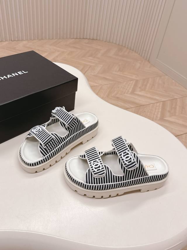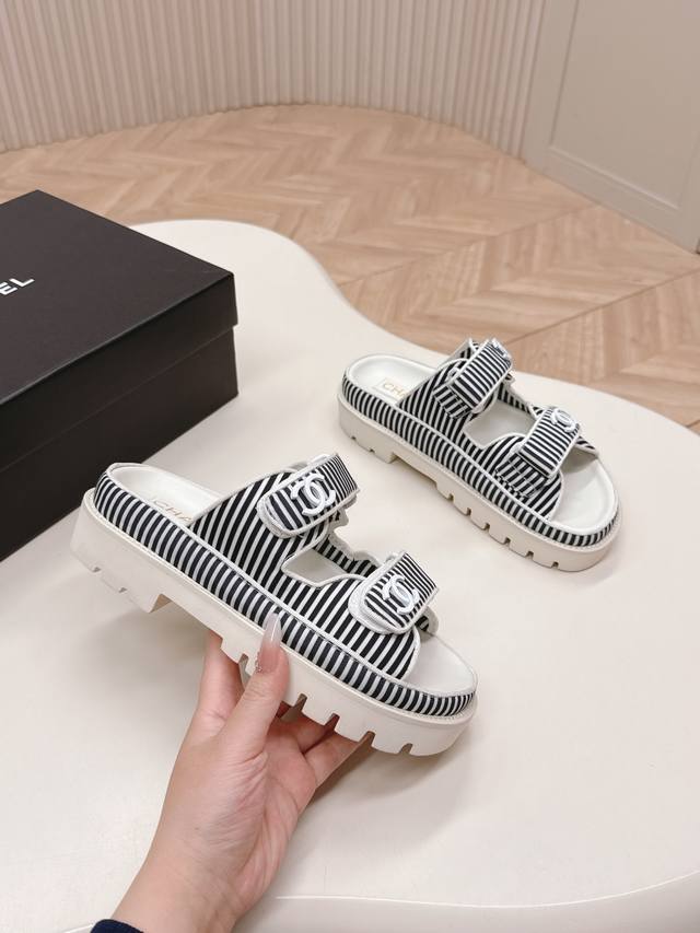 出拖鞋 凉鞋 2025新色系! Chanel 香奈儿 2025新款凉鞋拖鞋系列 经典系列 每个款式都很赞 菱格松糕底沙滩凉鞋 拖鞋 优雅高贵 舒适百搭 鞋面:羊皮 布面 垫脚:羊皮 鞋底:橡胶大底 码数:35-40