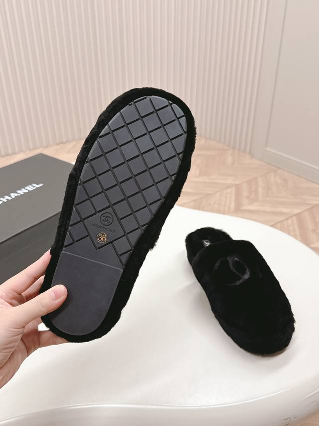 / 出 出pchanel 香奈儿 新款毛毛拖鞋! 这款毛拖真的是真太可爱了~ 柔软蓬松的毛毛,舒服暖脚 增高显腿长 秋冬搭配袜子休闲又慵懒 上脚真的好看又时髦 进口