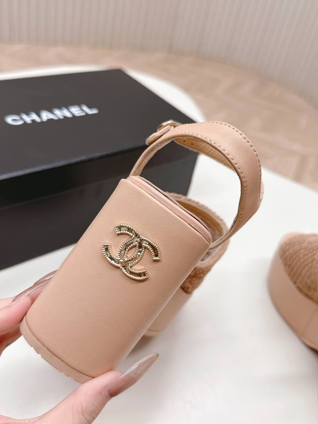 出 25Ss春夏新款Chanel香奈儿 坡跟厚底凉鞋双C编织镂空防水台高跟凉鞋