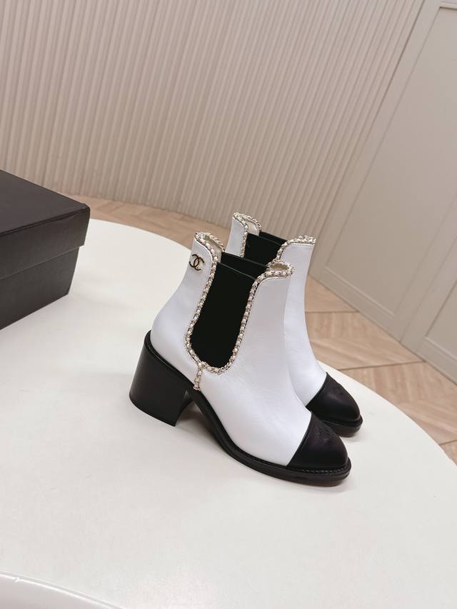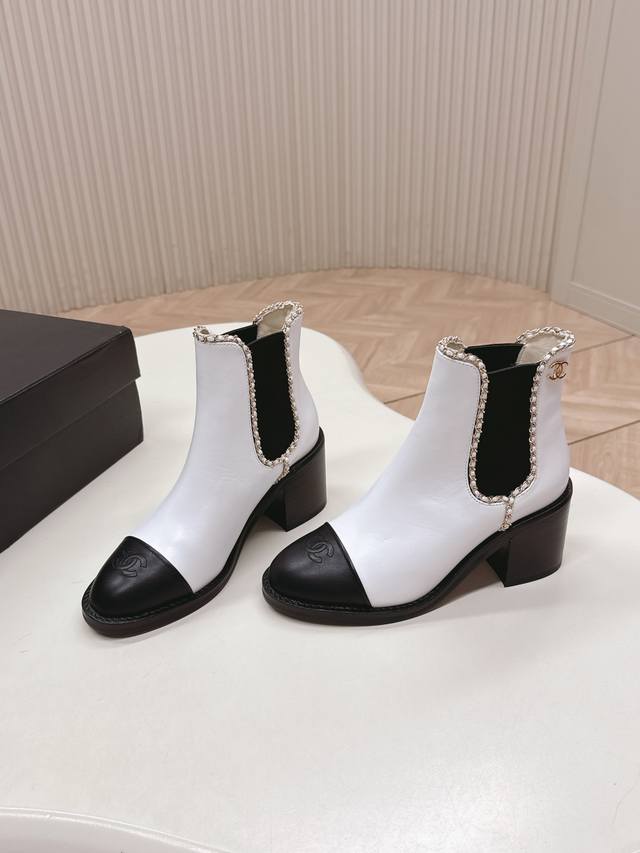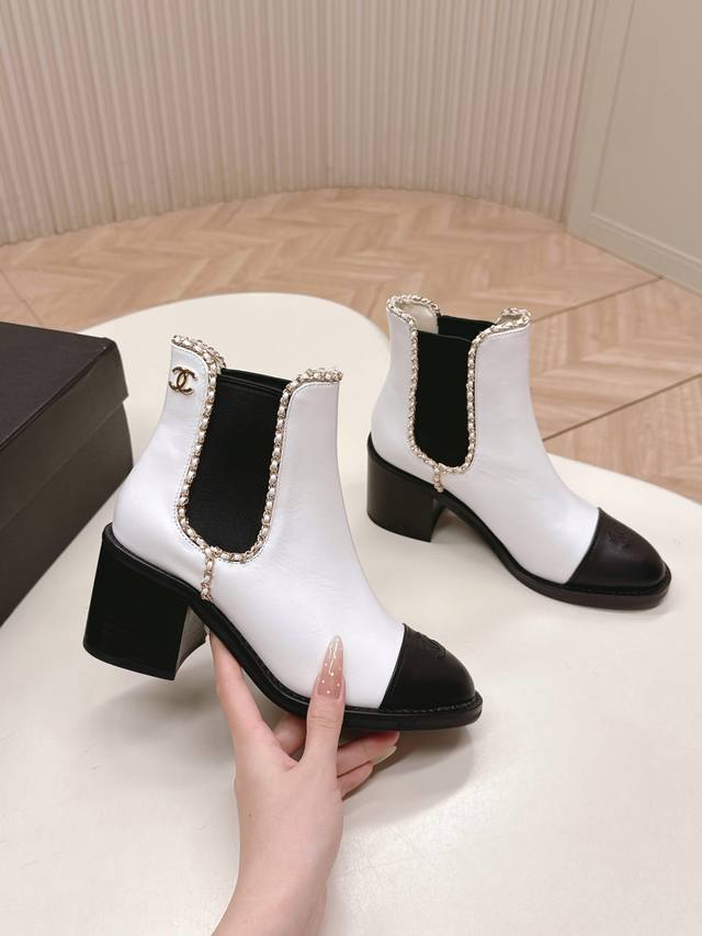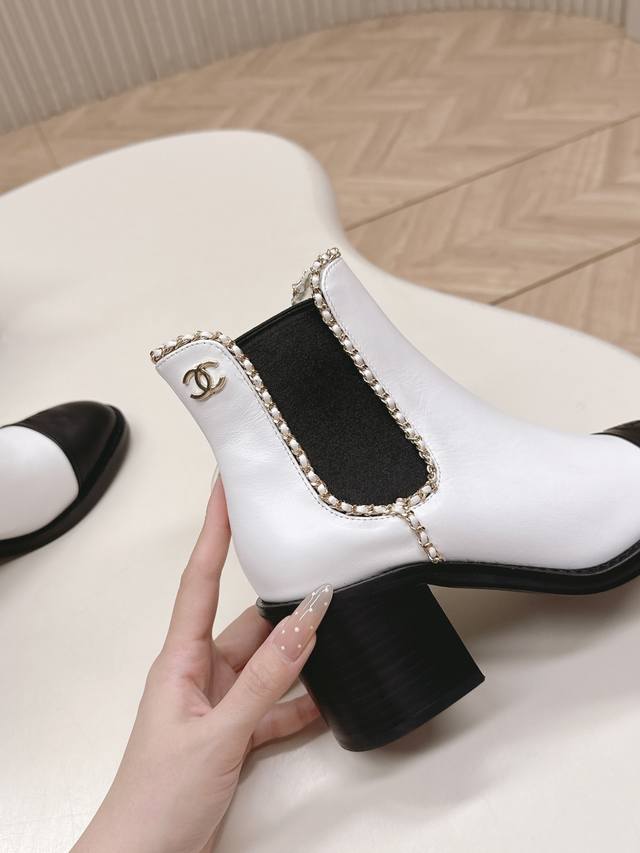 / 出 Chanel香奈儿25Ss 新款秋冬高跟马丁靴短靴 楦型百搭瘦脚Yyds.造型立体饱满,上脚舒适 气场十足,橡筋一脚蹬 易穿搭 经典链条五金 高级优雅 鞋面