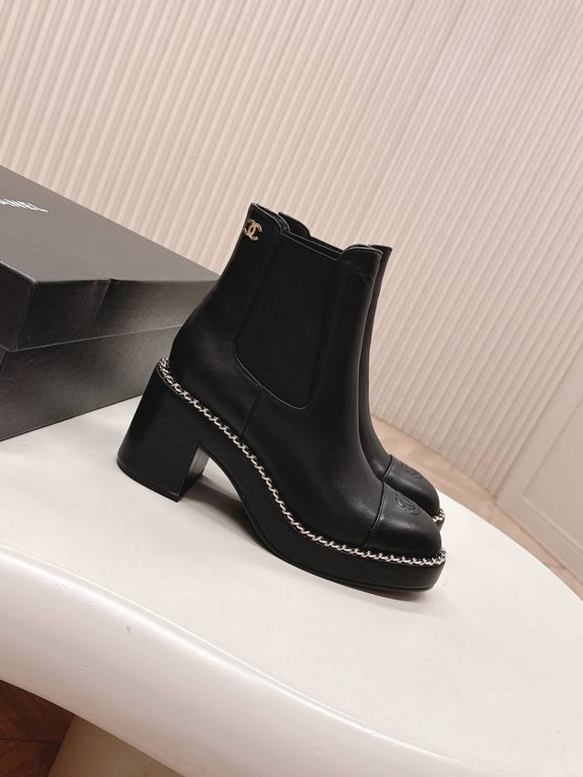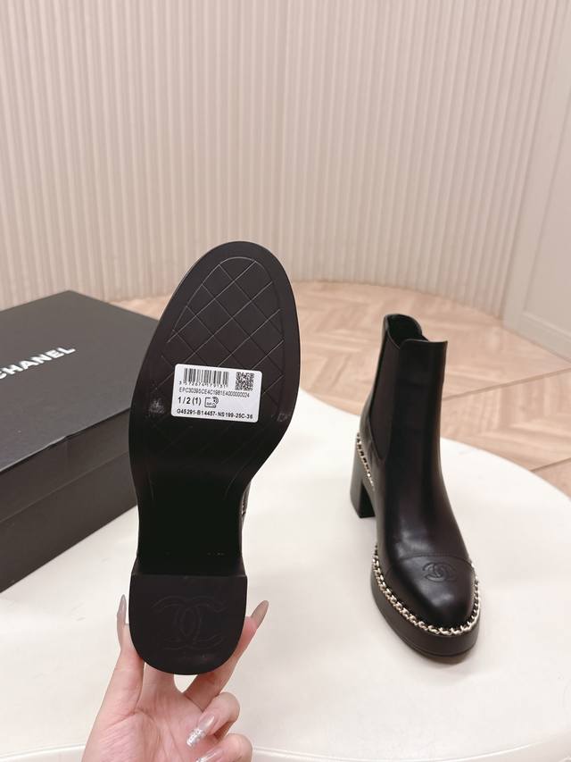 / 出 Chanel香奈儿25Ss 新款秋冬高跟马丁靴短靴 楦型百搭瘦脚Yyds.造型立体饱满,上脚舒适 气场十足,橡筋一脚蹬 易穿搭 经典链条五金 高级优雅 鞋面