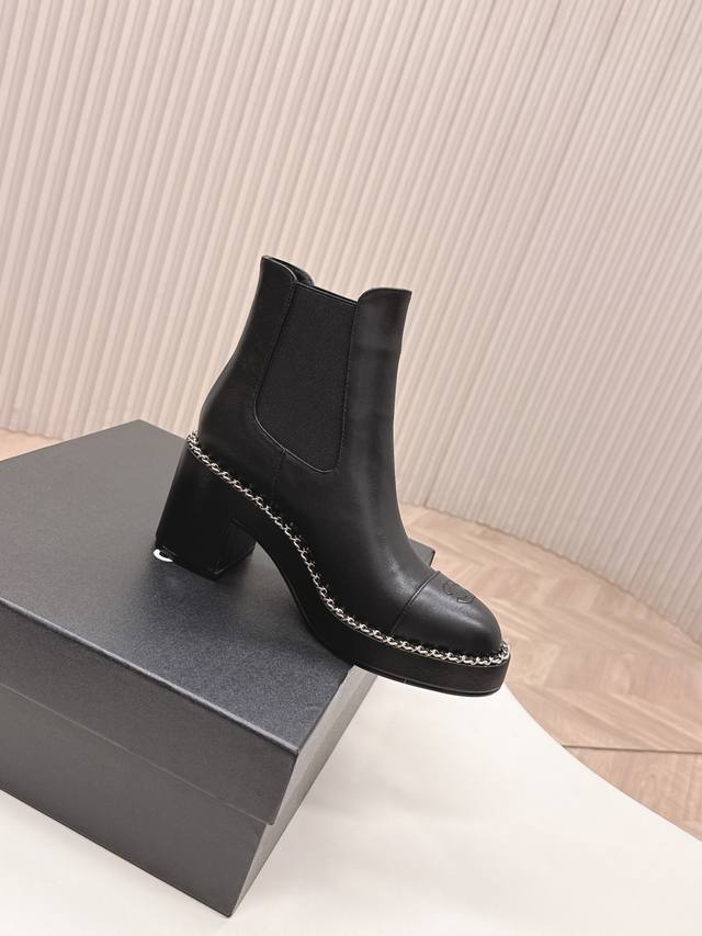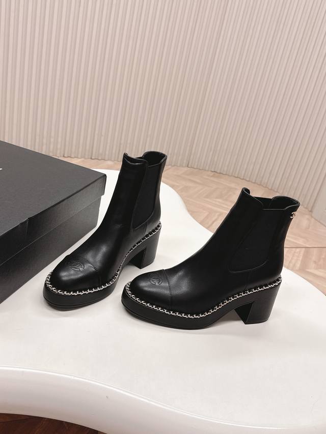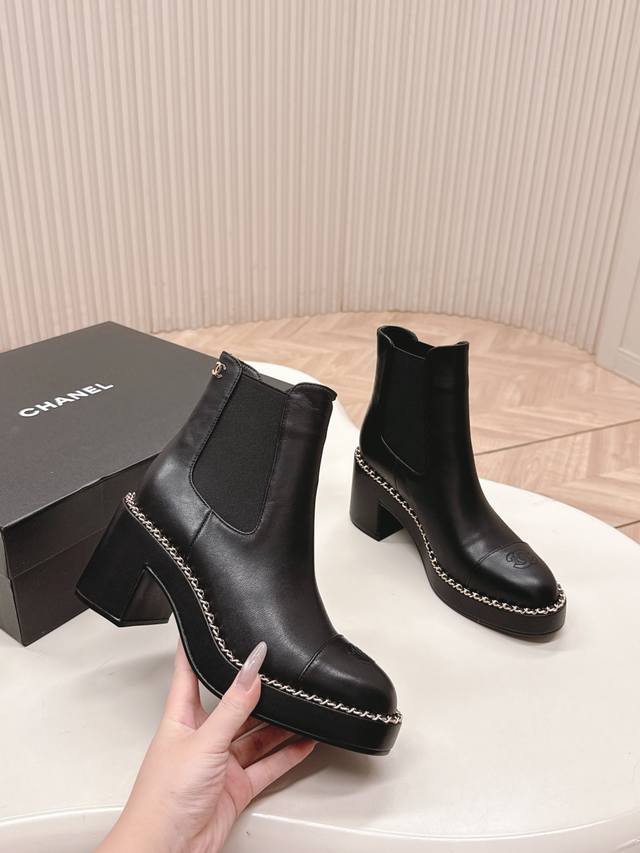 出 Chanel香奈儿25Ss 新款秋冬高跟马丁靴短靴 楦型百搭瘦脚Yyds.造型立体饱满,上脚舒适 气场十足,橡筋一脚蹬 易穿搭 经典链条五金 高级优雅 DDD 鞋面:牛皮 牛筋 DDD 牛里、垫脚! DDD Size: 35-39 40 DDD