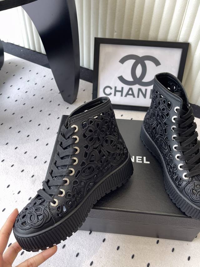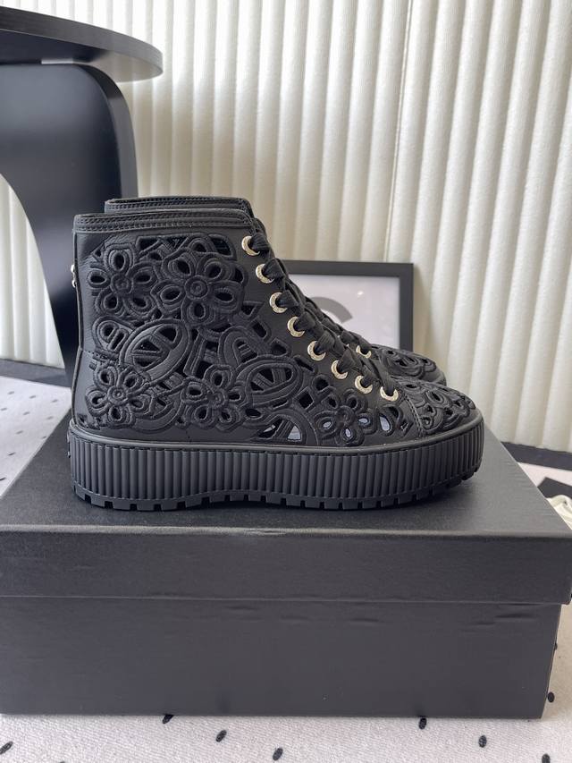 / 加毛530 Chanel秋冬新款镂空短靴 鞋面经典雕花刺绣,靴简沿用了香奈儿的经典搭配,小美美特别喜欢,这是香奈儿今年秋冬打造的爆款,容易上脚,超级舒服,今年秋
