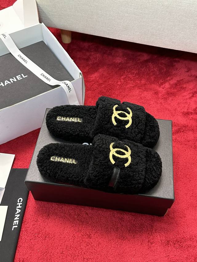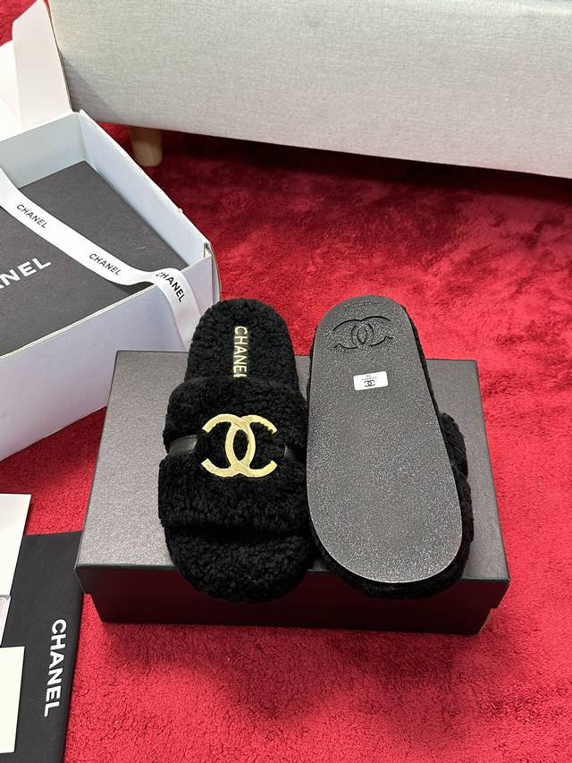 厂价 顶级版本 独家爆款Chanel香奶奶家24 最新毛毛拖 新品上市 !高级感拉满!室外居家都可以穿搭,高品质打造,秋冬出门帅气有型,秀出不一样的视觉美感 面料:纯羊皮毛一体内里垫脚:羊毛大底:原版开模成型底,舒服耐穿回弹力!码数:35-39 40.41定做 包装:原版全套包装