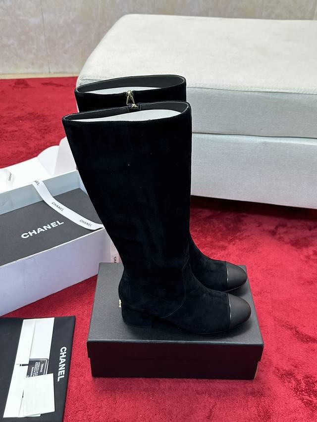厂价 顶级版本 Chanel官网同款, 香奈儿新款长靴,简约大方,时尚百搭脚感舒适, 鞋面:进口羊京+羊皮 内里:羊皮 跟高:5Cm 码数:35-39 注意40.41.42订做不退不换