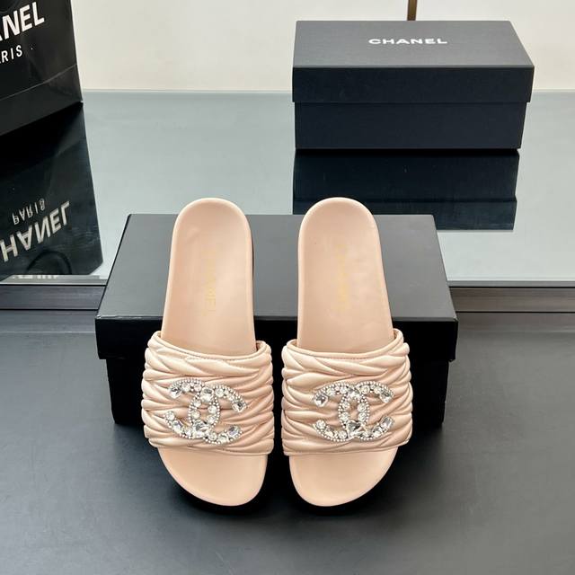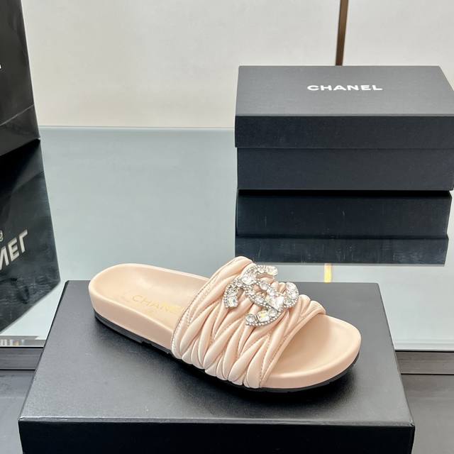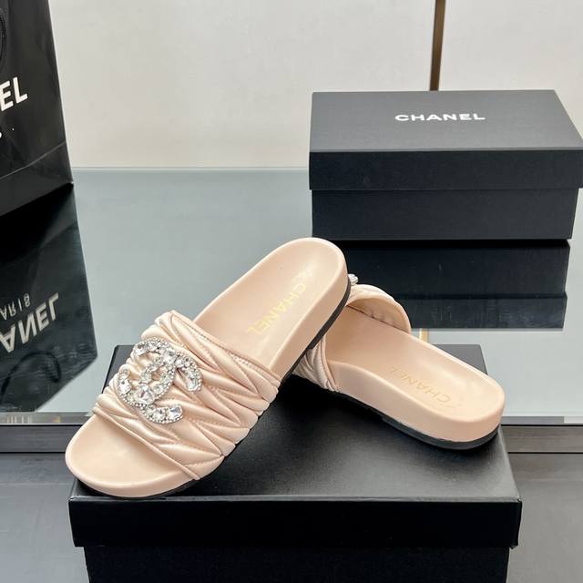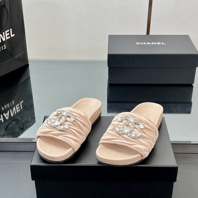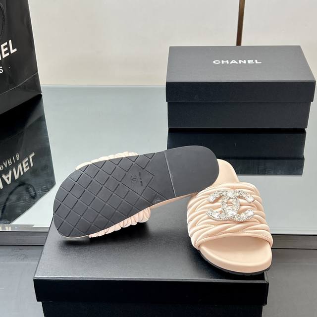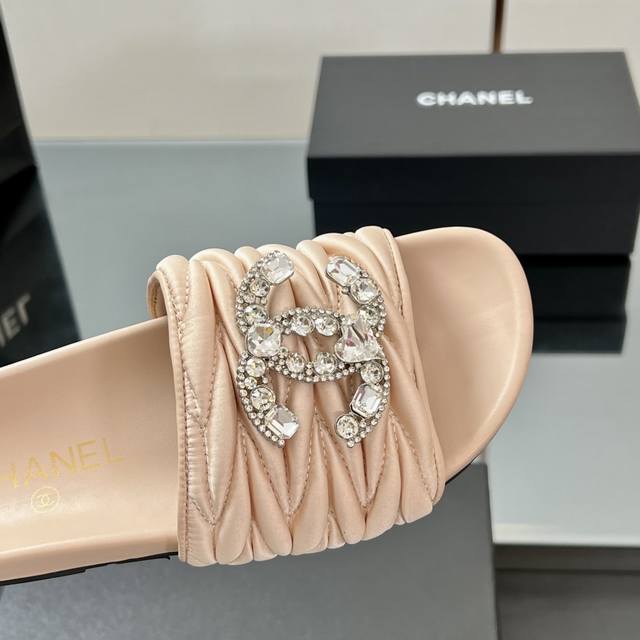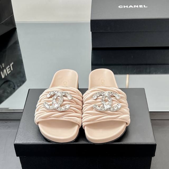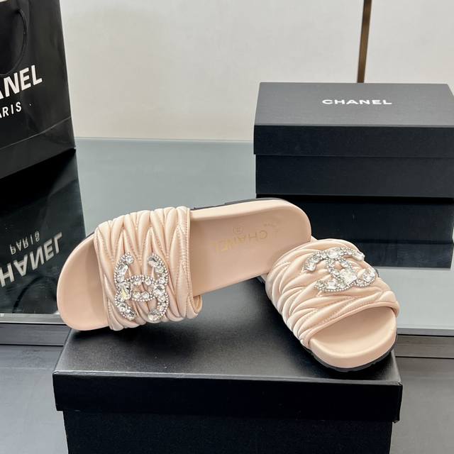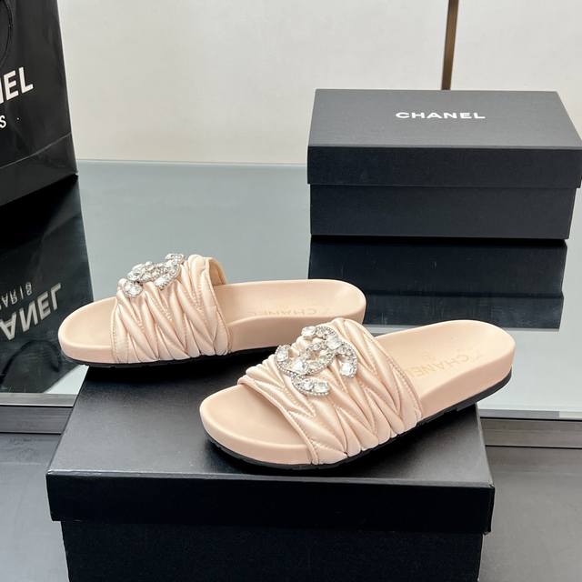 / 厂价 高版本凉拖鞋 Chanel 香奈儿 水钻拖鞋 2025春夏系列火爆上新,这一季香家小爆款!真的一眼爱了,真丝褶皱及水钻经典完美搭配真的超级有个性,是这款鞋