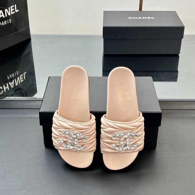 厂价 高版本凉拖鞋 Chanel 香奈儿 水钻拖鞋 2025春夏系列火爆上新,这一季香家小爆款!真的一眼爱了,真丝褶皱及水钻经典完美搭配真的超级有个性,是这款鞋