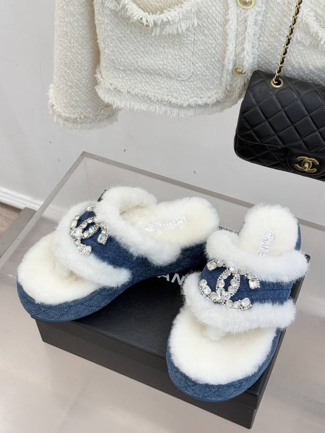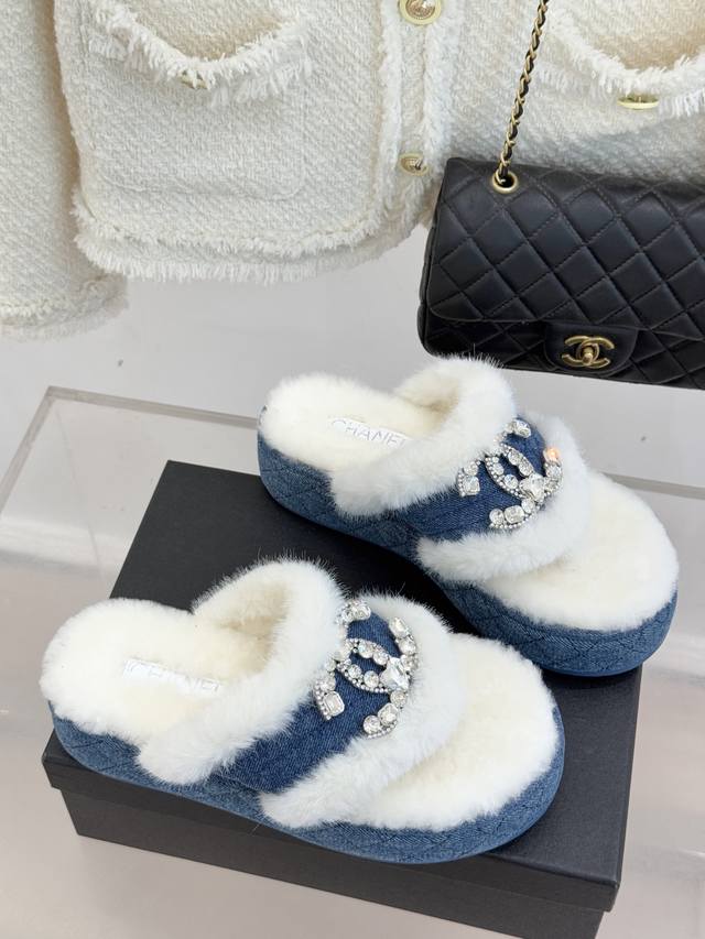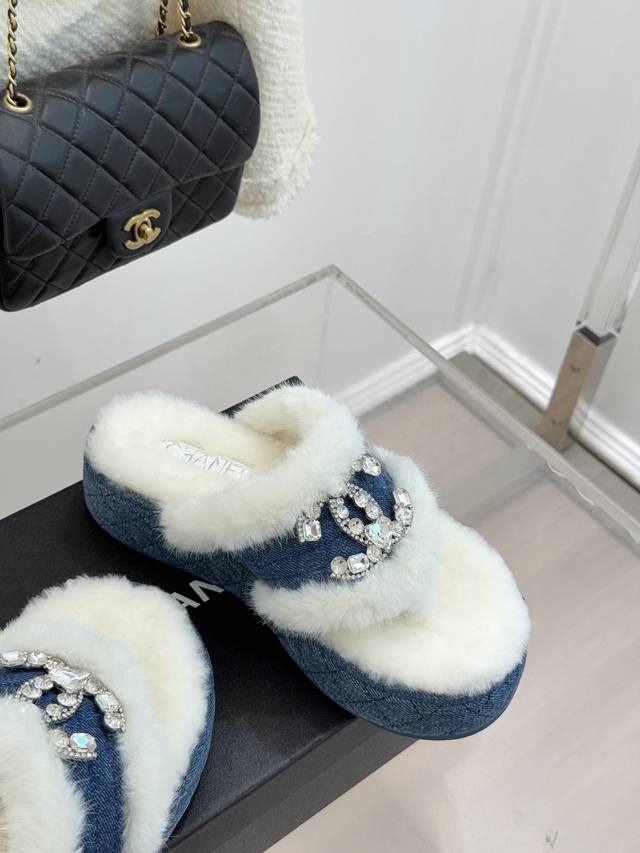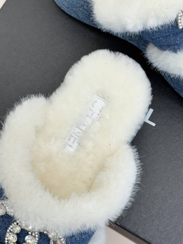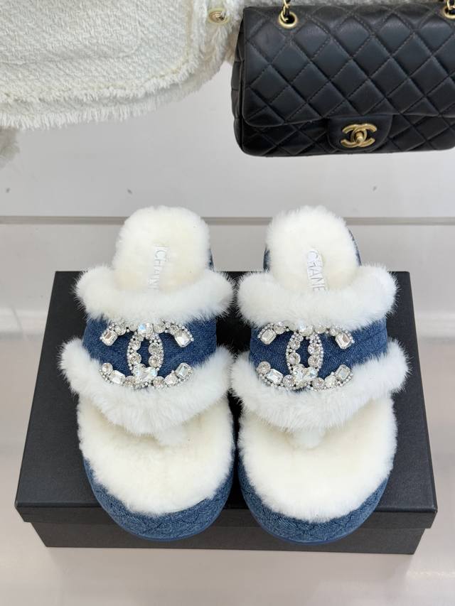 厂价 Chane*|小香经典双C水钻扣厚底夹脚 人字拖毛拖 当丰盈绒毛裹住厚底的随性 水钻双C在鞋面点亮光芒 这款毛拖便打破了拖鞋的场景边界 它以品牌经典符码为骨 以秋冬暖感为魂 让居家的舒适与出门的时髦无需取舍。 鞋面的水钻双C扣是当之无愧的焦点 将品牌的奢华基因藏于细节 不张扬却自带辨识度。 人字带间的蓬松绒毛柔软亲肤 如云朵般包裹足间 光脚穿也暖意十足 搭配袜子更添慵懒层次感。 厚实的橡胶厚底延续品牌舒适理念 不仅坚固耐穿 更能悄悄拉长腿部线条 让身形显得修长挺拔 行走时脚感轻盈不费力 日常逛街、居