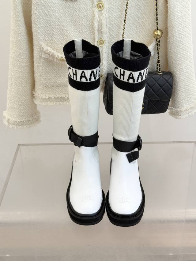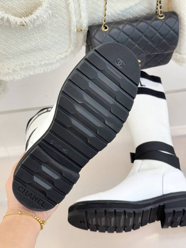 厂价 Chane*|小香经典字母双C厚底袜子靴 延续1925年创立的经典设计基因 简洁线条中透着无需言说的奢牌辨识度拼色设计 面料如定制袜子般紧密贴合脚踝与小腿, 修饰线条的同时毫无束缚感。 厚实橡胶厚底暗藏增高心机 日常通勤或长时间行走都能保持从容。 利落短靴型精准优化腿部比例, 无论是搭配牛仔长裤打造休闲格调 或与精裁套装适配职场 都能轻松驾驭。 作为融合经典标识与实穿设计的单品, 轻松成为贯穿秋冬的百搭利器。 面料采用定制针织材质+牛皮 内里垫脚均为羊皮 原版开模定制防滑大底 Size:35-39