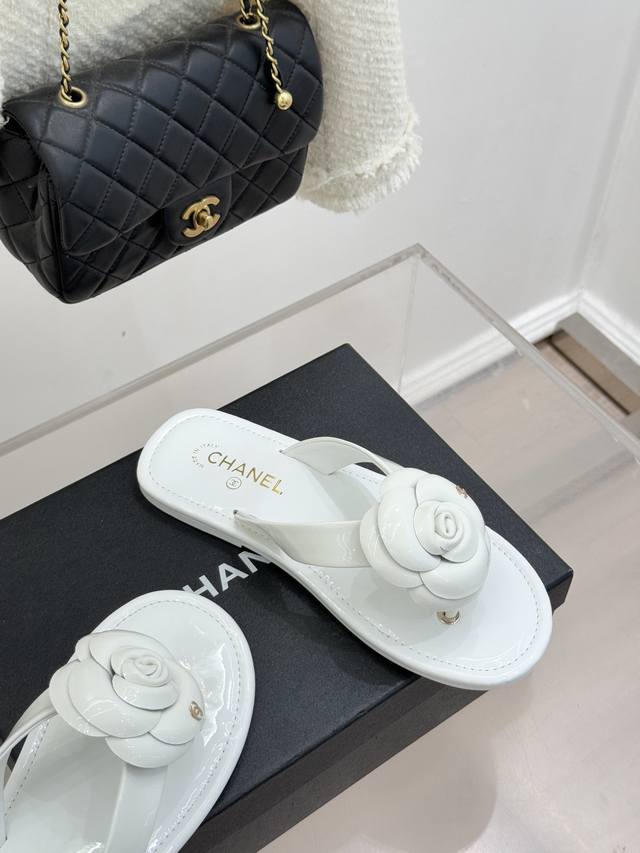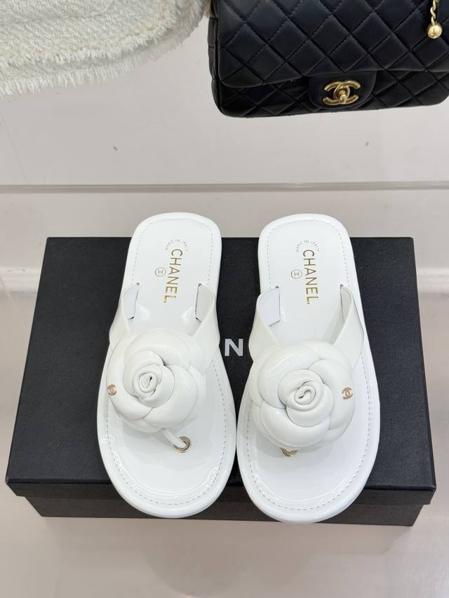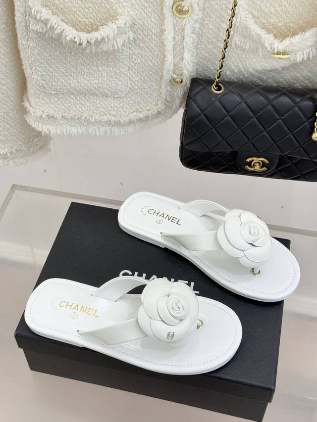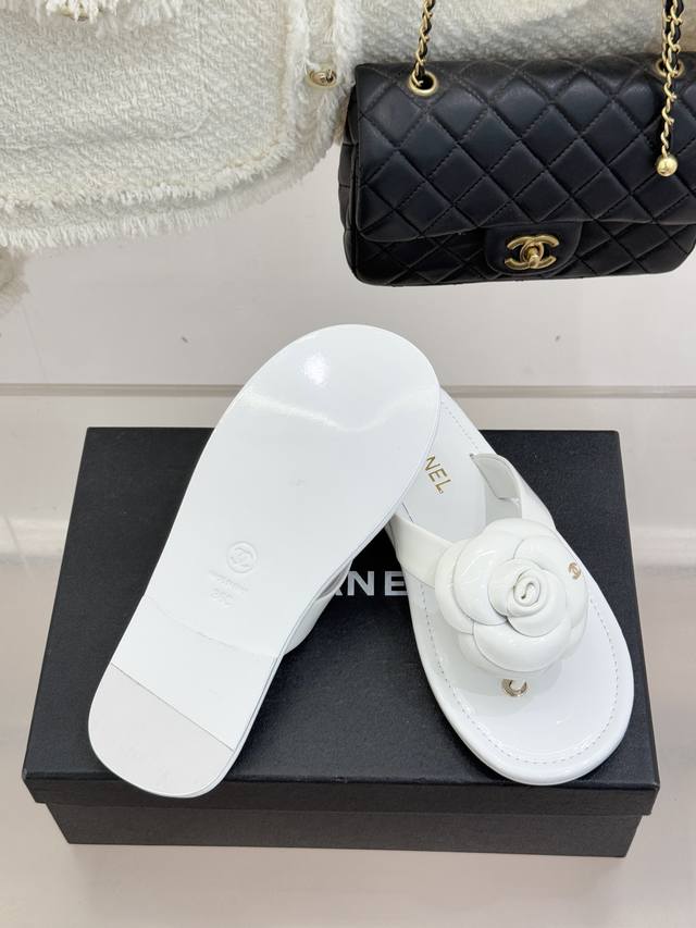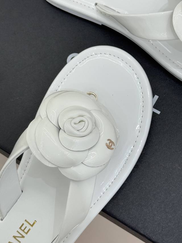 厂价 Chane*|小香 26C早春新品山茶花 夹脚人字拖鞋 将标志性山茶花元素注入慵懒步调 让轻奢质感融入每一段自在行程。 夹趾处缀以立体雕琢山茶花饰件 花瓣