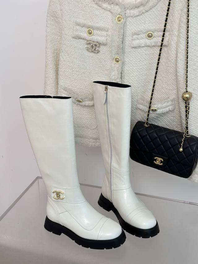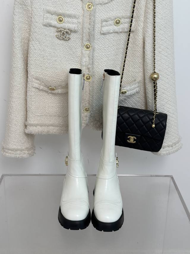 厂价 Chane*|小香23C秋冬新品 双C书包扣厚底长靴系列 鞋面采用进口小牛皮 内里垫脚都是丝绸羊皮 原版开模大底 跟高:3.5Cm Size:35-39 40 41定制